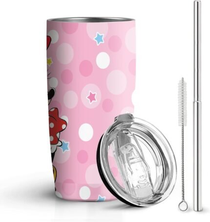 Pink 20 Oz Stainless Steel Tumbler Leak Proof Tumbler with Straw and Lid, Travel Coffee Mug for Home Outdoor, Thermal Cups for Hot and Cold Drinks