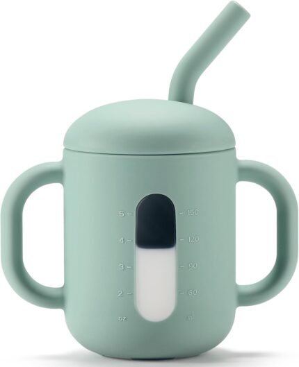 CLYMENE Silicone Training Cup with Straw & Handles | Baby Sippy Cup | Water Drinking Cup for Infants and Toddlers 6 Months+, 6 oz, Sage