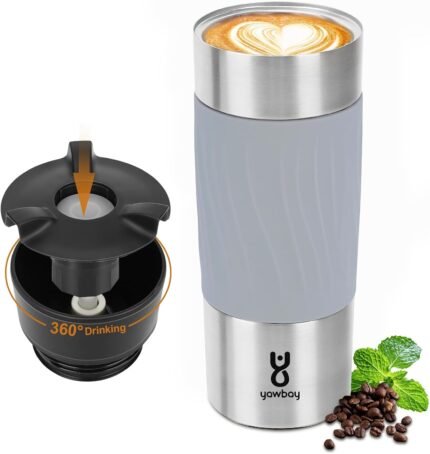 Yawbay Travel Coffee Mug with 360°Lid, Travel Coffee Tumbler 16 oz Leak Proof, Stainless Steel Insulated Travel Mugs for Hot and Cold Spill Proof Leak Proof(Grey)