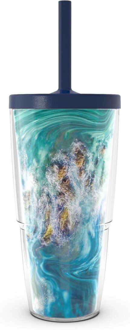 Tervis Teal Splash Made in USA Double Walled Insulated Tumbler Travel Cup Keeps Drinks Cold & Hot, 24oz with Straw Lid, Classic