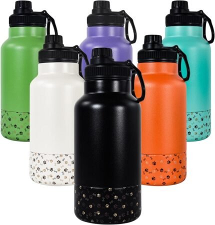 AGH Portable Dog Water Bottle with Detachable Bowl, 32oz Double Wall Vacuum Flask Stainless Steel for Walking and Hiking, Black
