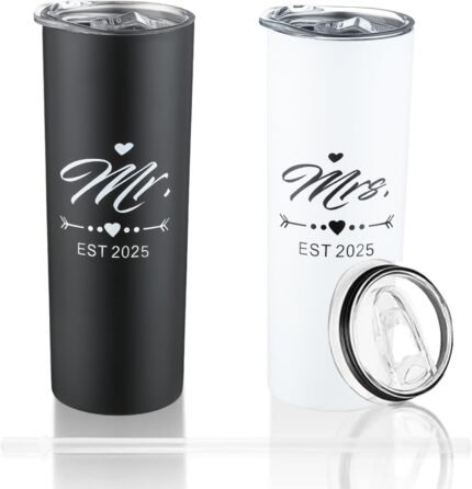 DHQH Mr and Mrs 2025 Tumbler Set, Engagement Wedding Gifts for Couples Wife Husband Bride To Be Newly Engaged 20oz Travel Tumbler Bachelorette Party Gifts