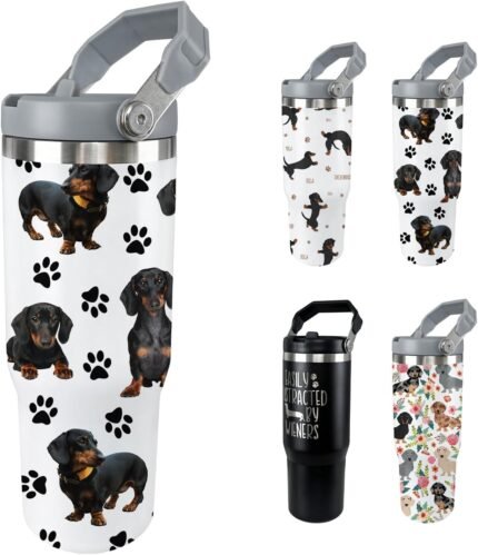 Dachshund Dog Tumbler Weiner Weenie Gifts for Women Men 30 Oz Dog Tumbler Insulated Dachshund Water Bottle Cup with Handle
