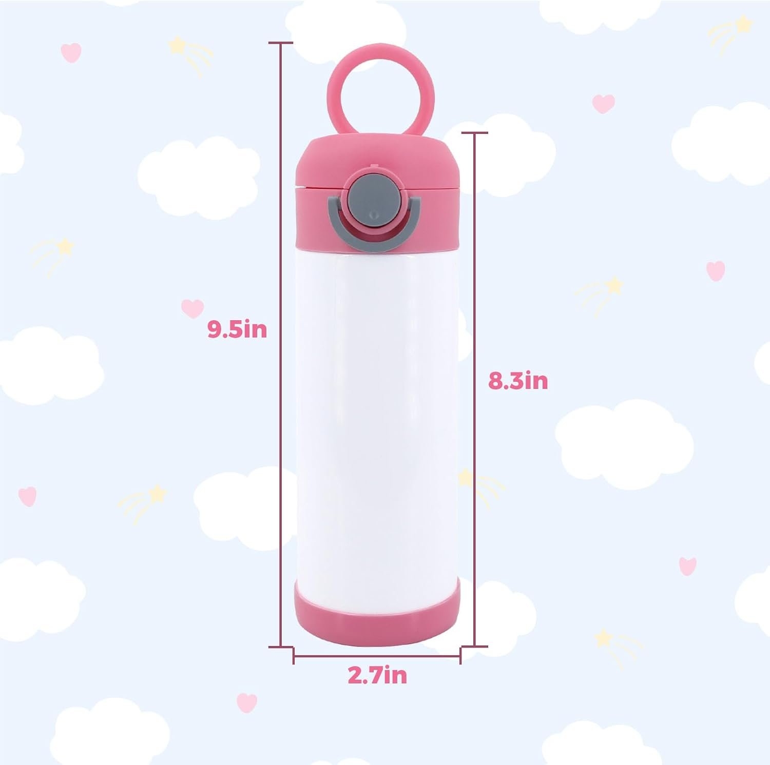 1 Pack 12 OZ Sublimation Sippy Cup with Blue Lid Spill Proof Blank Tumblers Stainless Steel Thermoses for Hot Drinks Bulk Double Wall Vacuum Insulated Water Bottle for School