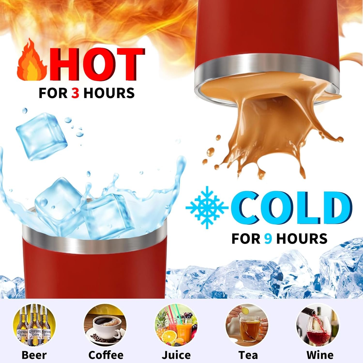 【20 OZ TUMBLER & Insulated Tumbler】 Keep beverages hot/cold for 10+ hours with our 20 oz stainless steel tumbler. The double-walled vacuum insulation ensures optimal temperature retention, perfect for outdoor adventures or daily hydration. Lab-tested to withstand drops and extreme temperatures. Enjoy every sip, anytime, anywhere!