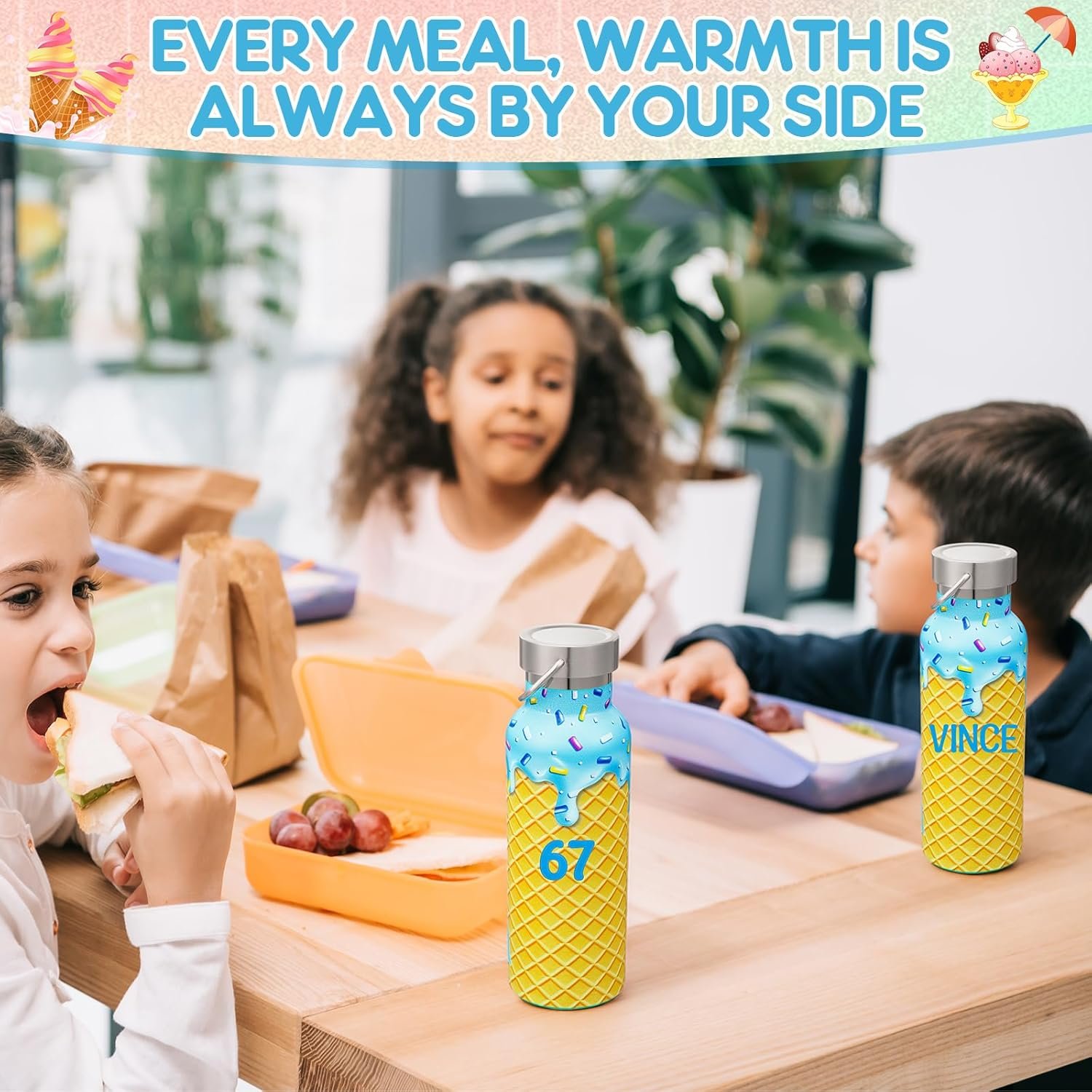 Ice Cream Baseball Theme Design: the insulated water bottle adopts a blue ice cream baseball theme design; The pattern is printed on the surface of the rusty steel shell, which is bright and clear and not easy to fall off; The blue DIY sticker allows you to easily personalize the water bottle, which is an ideal choice for users who like personalization and customization