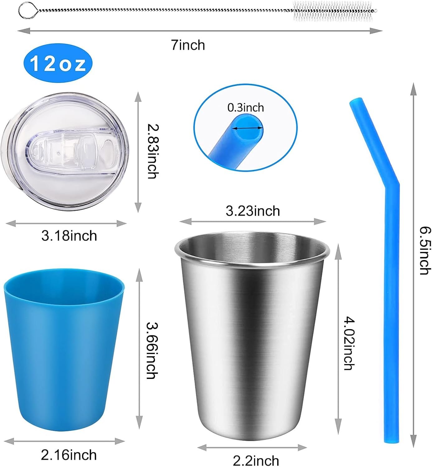 Kids Stainless Steel Cups * 10Spill-Proof Lid * 10Silicone Straws * 10Silicone Sleeves * 10Straw Cleaning Brush * 3