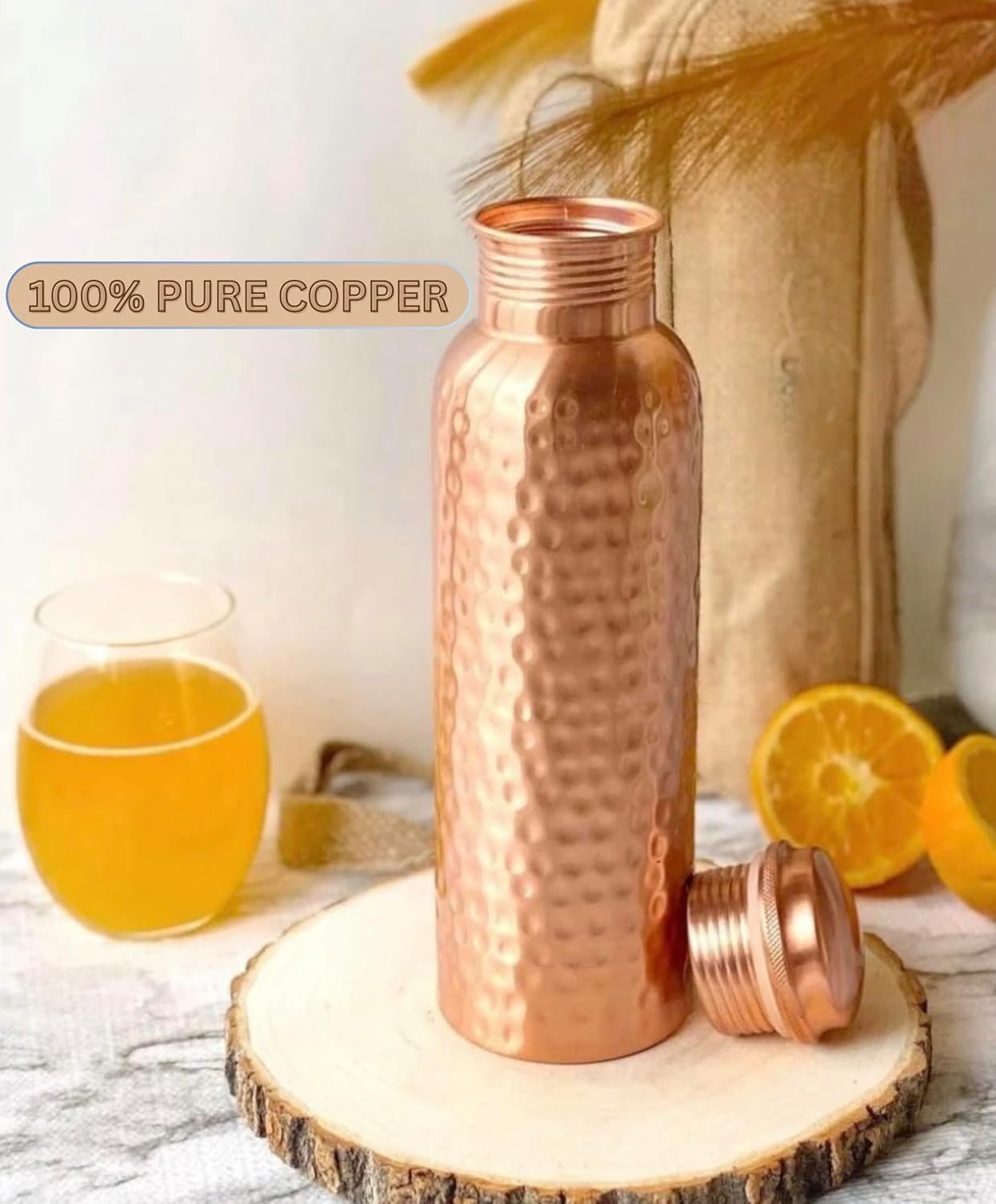 PURE COPPER CONSTRUCTION: Crafted from 100% pure copper with a polished hammered finish, this water bottle offers traditional wellness benefits