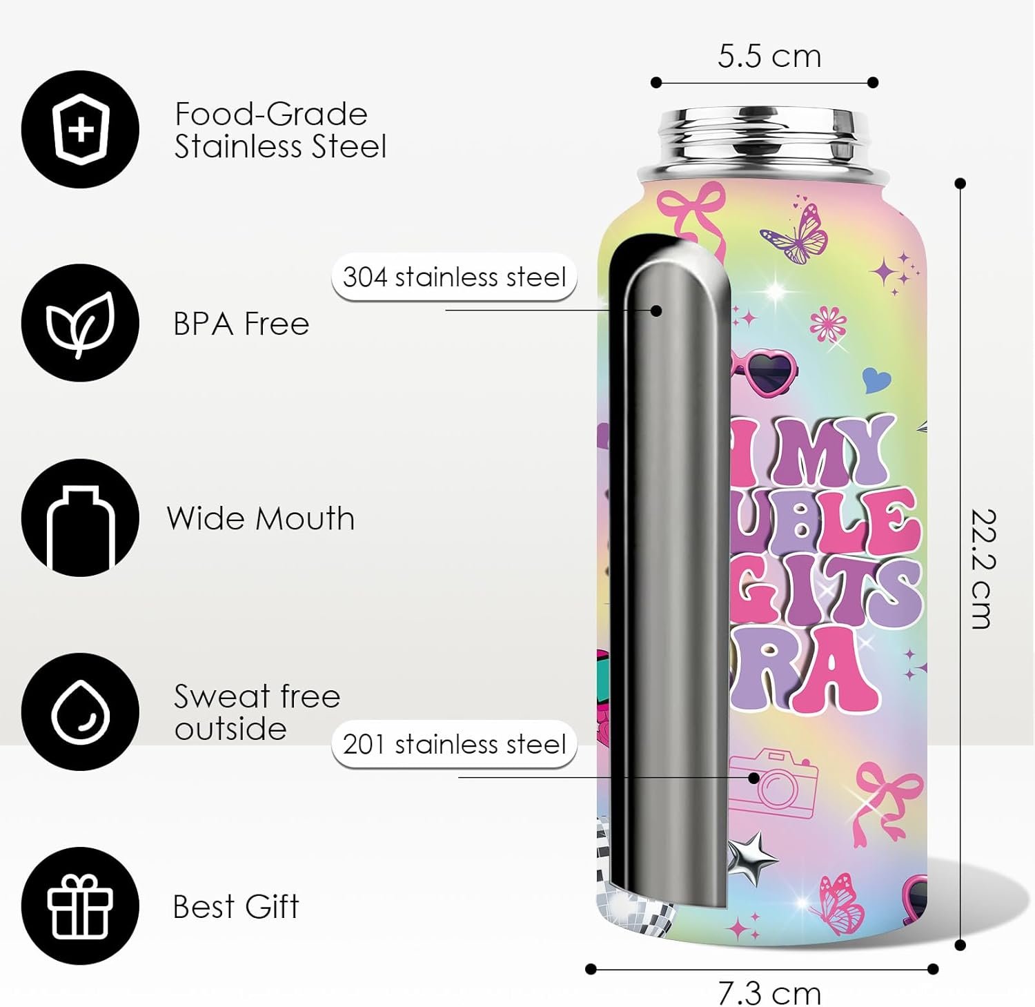 【Gifts for Girl】This gift cup is the best present for your daughter, niece, granddaughter, friend, classmate or girlfriend. The fashionable and simple pink appearance and the cool pattern decoration are luxurious and understated, conveying your endless love for her. This cup is very suitable for indoor use. It can also be used as an accessory for camping, fitness and rock climbing, showing a unique taste. It is a cool gift for girls