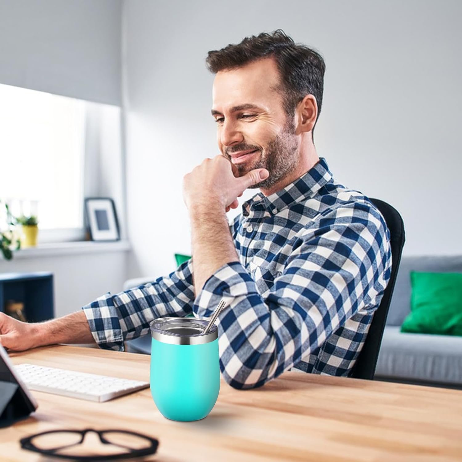 12 oz Insulated Wine Tumbler with Lid and Straw,Stainless Steel Stemless Wine Tumbler Glasses Double Wall Vacuum Wine Cups Tumbler for Coffee,Champaign,Office(Mint Green,1)