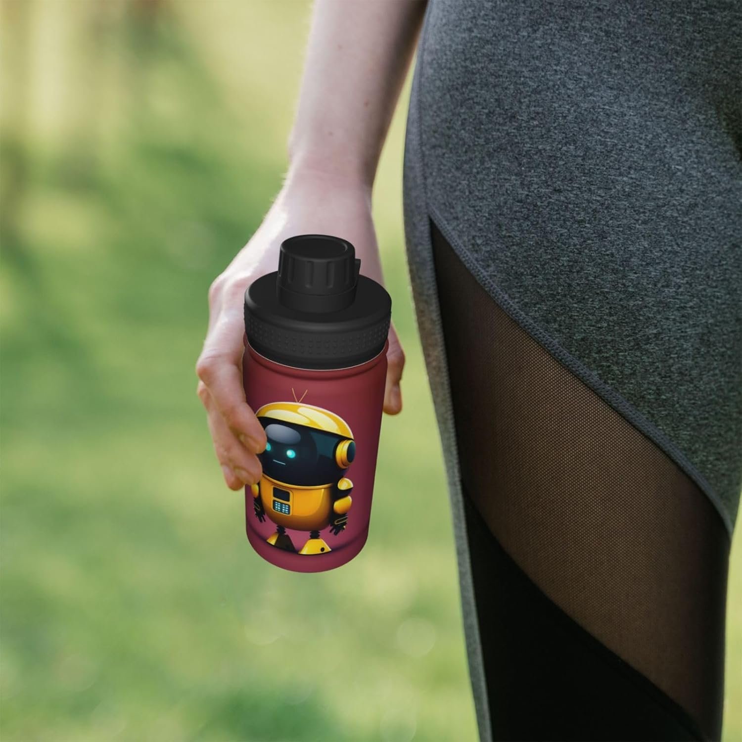 Stay refreshed with this 12 OZ Smart robot insulated stainless steel bottle, built with a durable double-wall construction to keep beverages warm or cold for hours. Featuring an innovative three-finger flip lid with a hinge lock, it’s ideal for one-hand use during your commute, sports, or outdoor activities. The inner layer uses 304 stainless steel while the outer layer is crafted from 201 stainless steel, making it reusable and odor-resistant. Whether you’re at the office, in the car, or on a camping trip, this portable tumbler fits easily into your daily carry. Designed for everyday hydration needs, it works with straws, hot coffee, or cold drinks. Hand wash with water only to maintain appearance and performance. Perfect for use in coffee shops, at home, or while traveling.