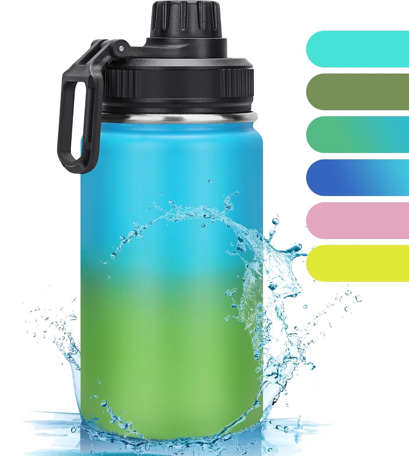 12 oz Water Bottle,Small Insulated Water Bottle, Stainless Steel Small, Leak Proof with Chug Lid, Wide Mouth BPA Free Double Wall Vacuum (Blue/Green)