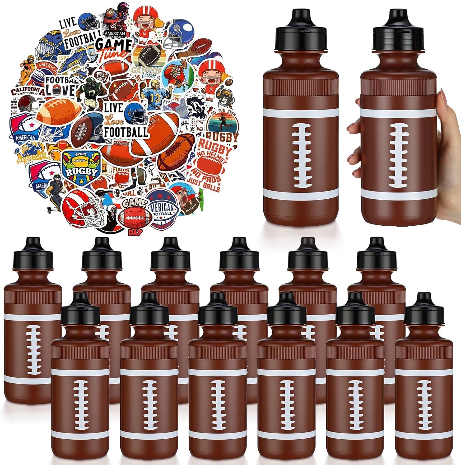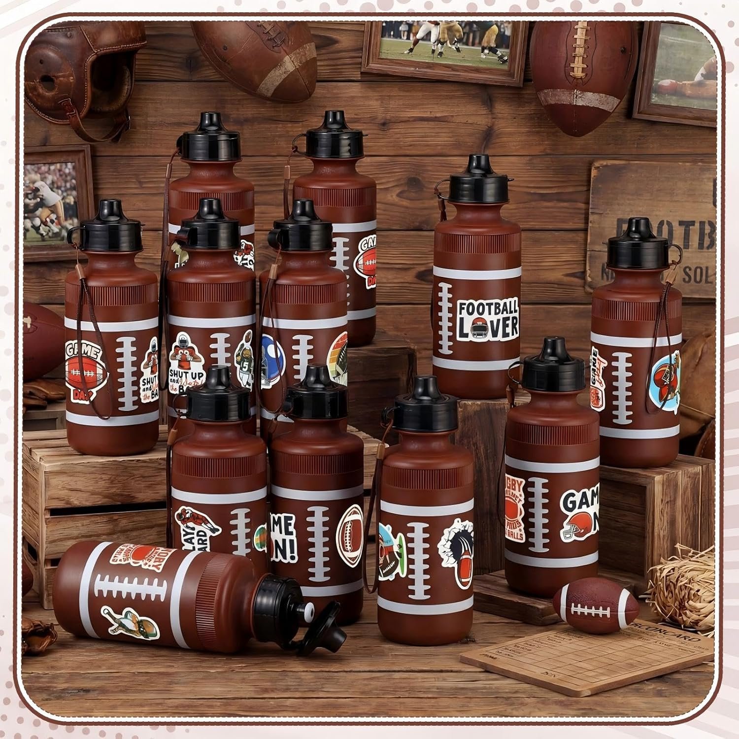 Good for football enthusiasts, team events, or outdoor adventures. This set includes 12 durable 20oz plastic water bottles, each featuring a convenient lanyard for easy carrying. Plus, it comes with six packs of football-themed stickers (50 stickers per pack), making it a fun, customizable gift for fans, teammates, or family members