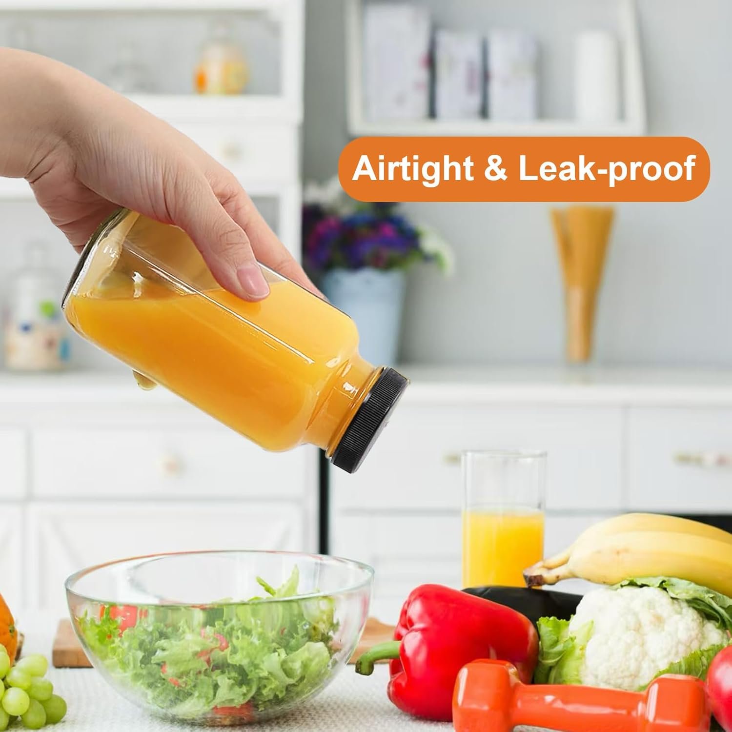 Product Makings: Our water bottles are made of glass, beautiful and solid, reusable. Leak-proof Caps: The sealing gasket in the plastic lid provide a high closure to prevent liquid leakage. Glass juicing bottles with such caps are perfect for travel, parties, picnics,wedding, home & garden decor and more.