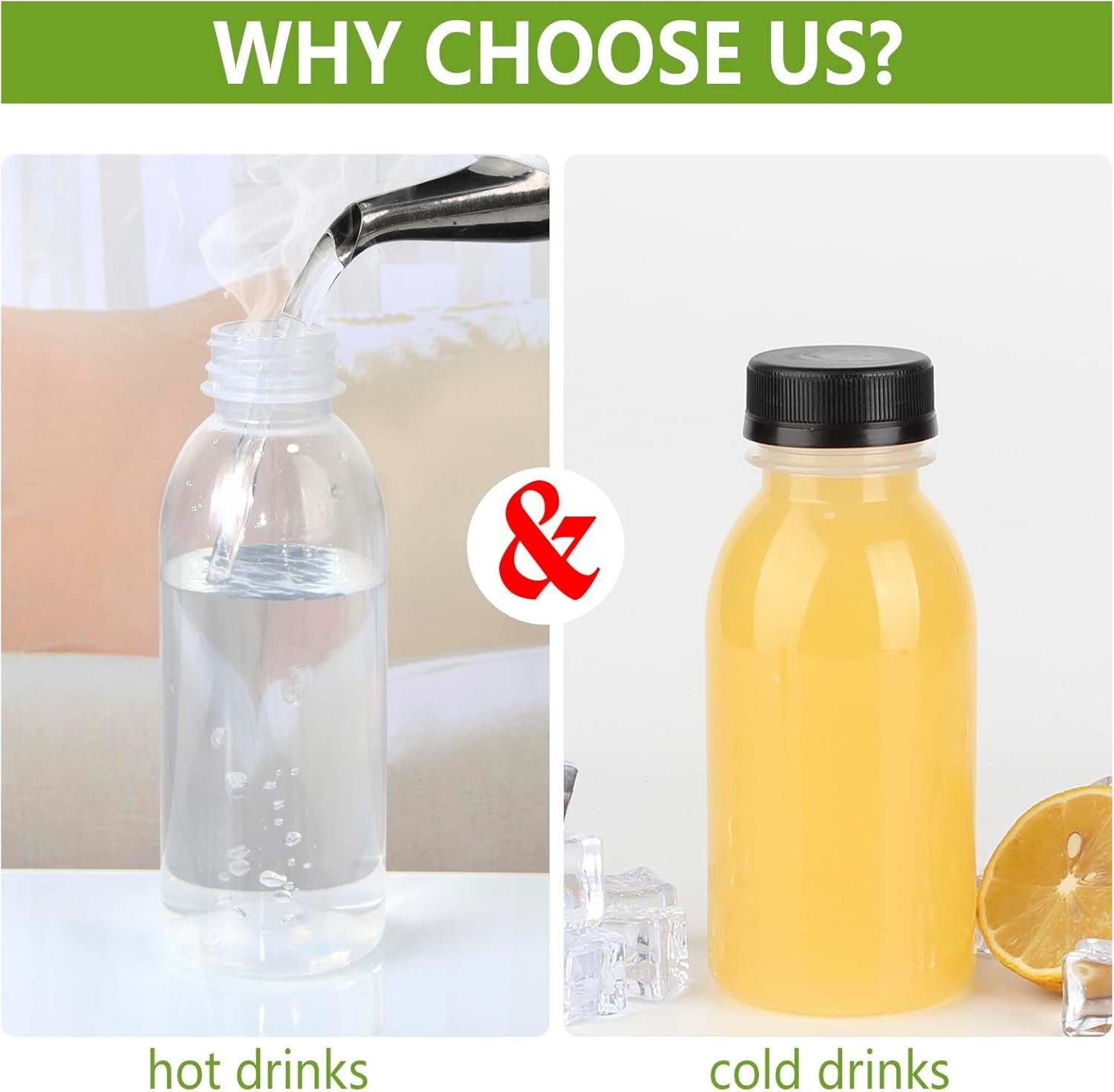 These 8oz plastic beverage bottles are ideal for daily life, juice stores, takeout restaurants, carnivals, bars, picnics, or catering events. Perfect smoothies bottles for storing juice, milk, shakes, iced coffee, fresh juices, water, or any other homemade beverage