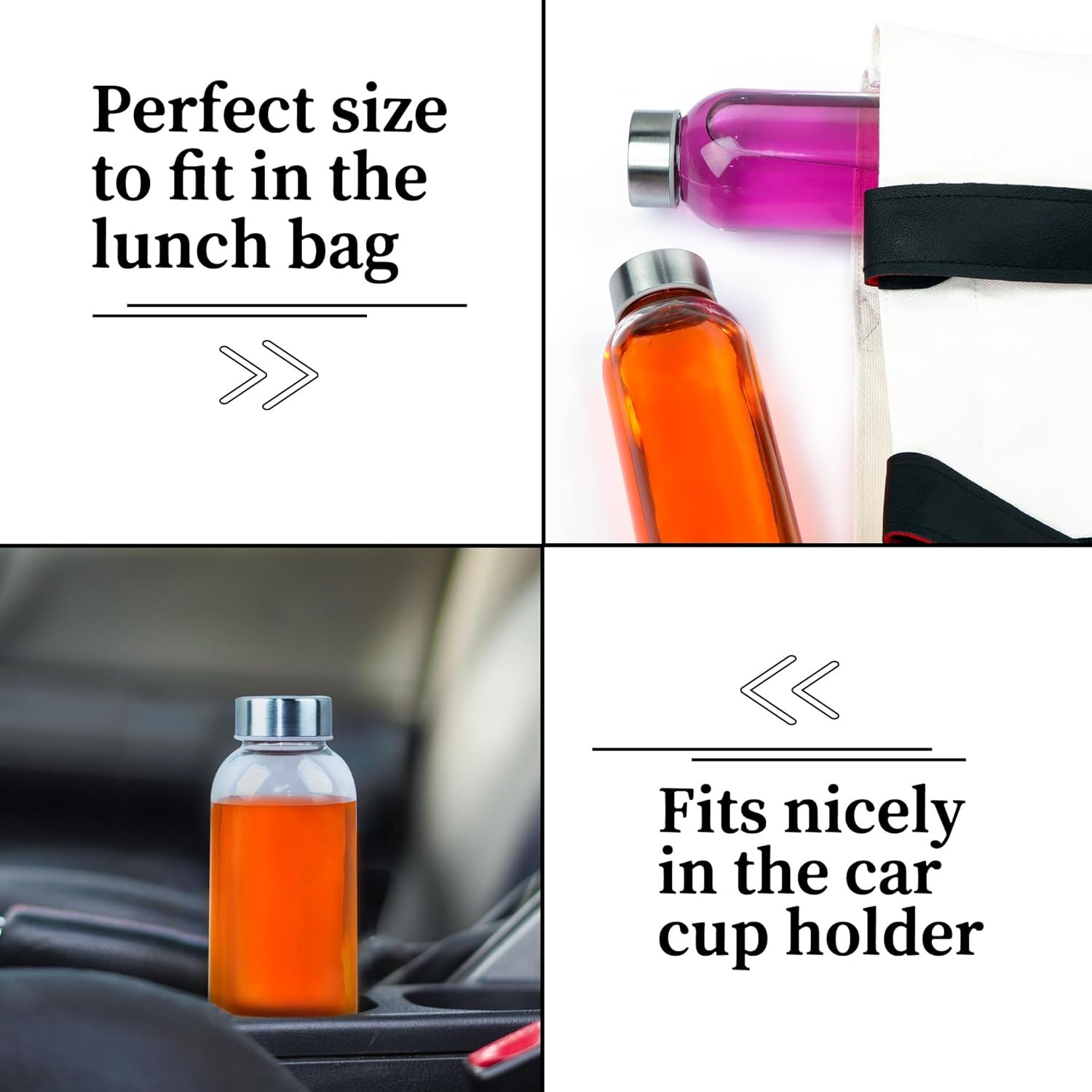 12 Pack Glass Water Bottles, 16oz Clear Glass Bottles with Stainless Steel Lids, Reusable Glass Drink Bottles with Caps for Juicing, Smoothies, Tea, Water, Beverages