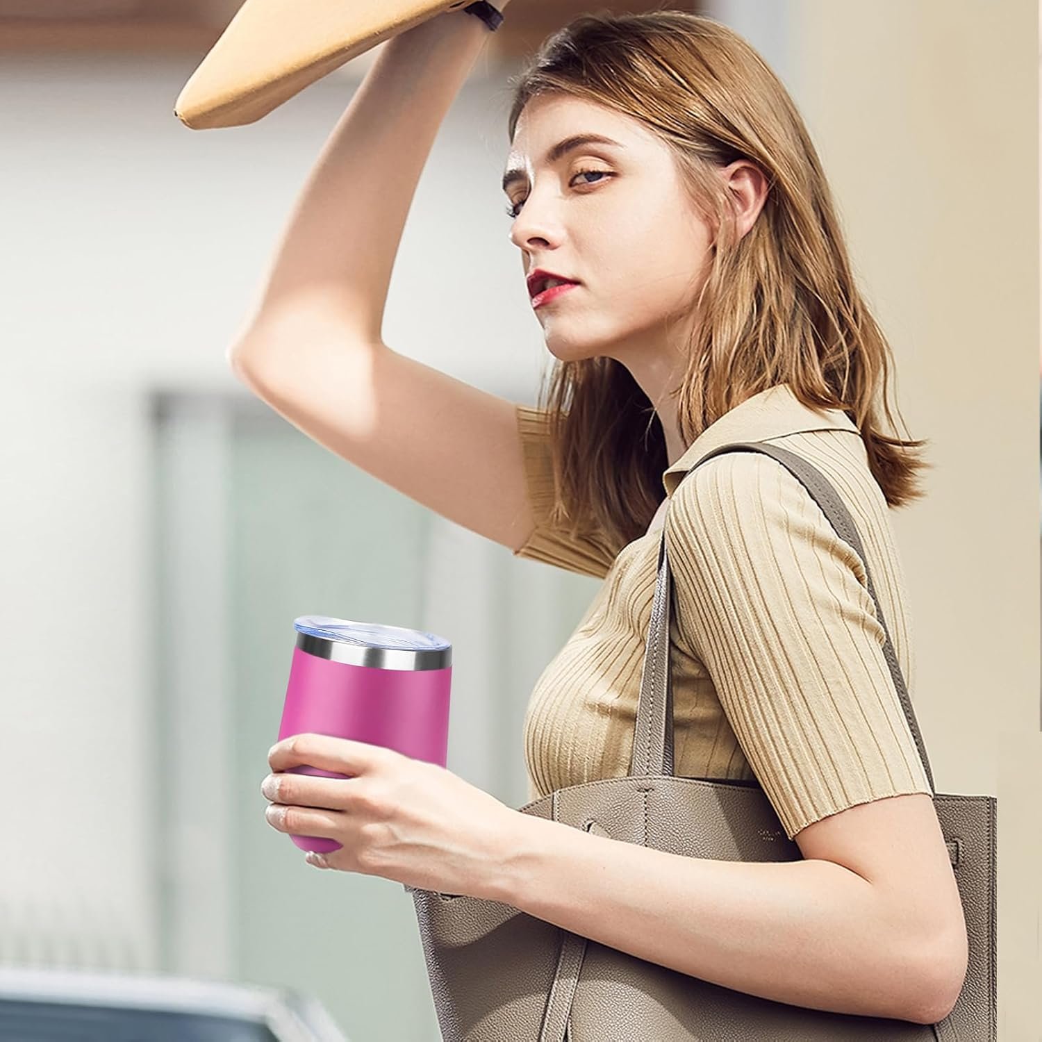 [MULTI APPLY APPLICATION]Our 12oz capacity wine glass tumblers are good for all occasions home, office, picnics etc. Suitable for hot water, wine, beer, coffee, drinks, champagne, cocktails and storing any beverage other drinks you like ! They are easy to clean.