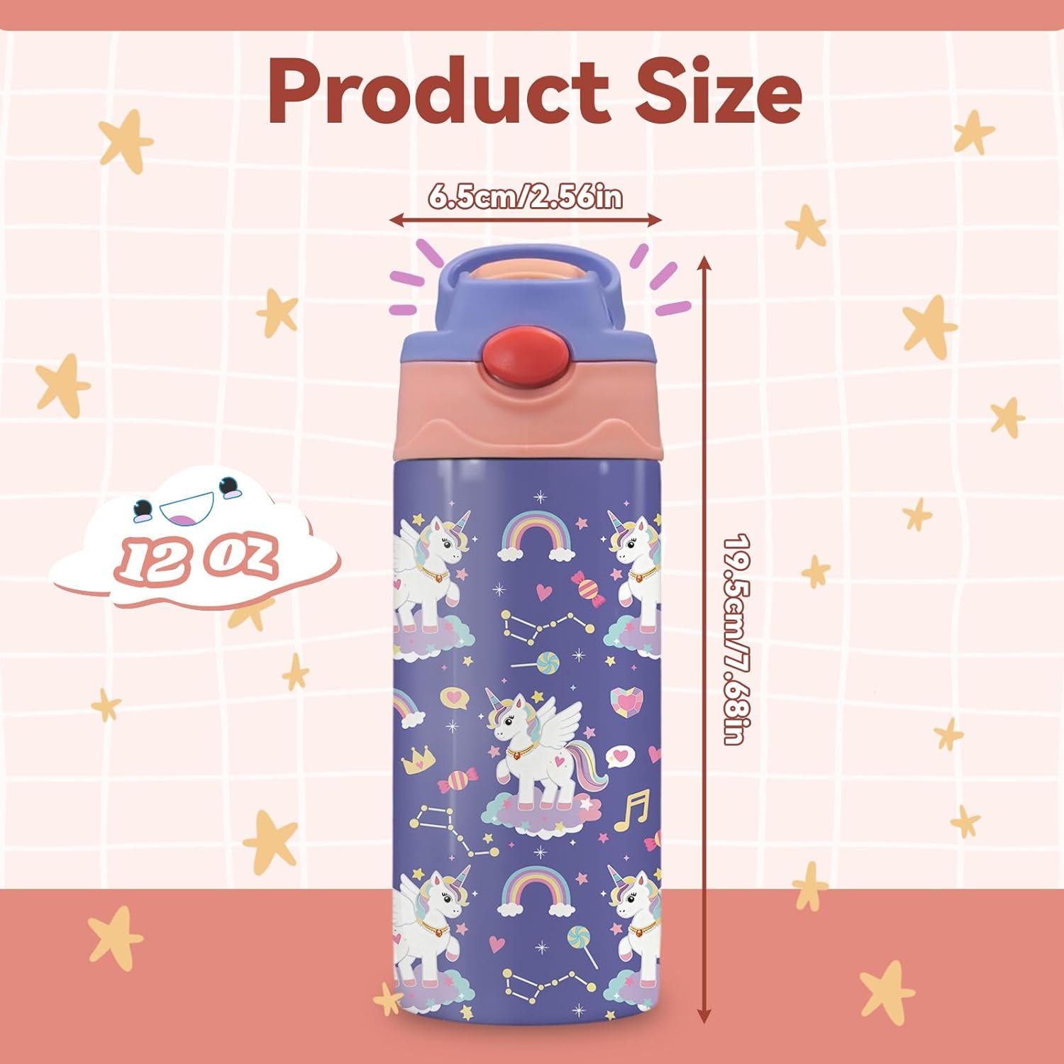 Be the first to review “12oz Girl Water Bottle with Straw Lid & Handle – Unicorn Leak Proof Water Bottles Kids, Double-Wall Stainless Steel Pop-top Lid Purple Kids Insulated Bottles for School, Gift Cup for Kid”