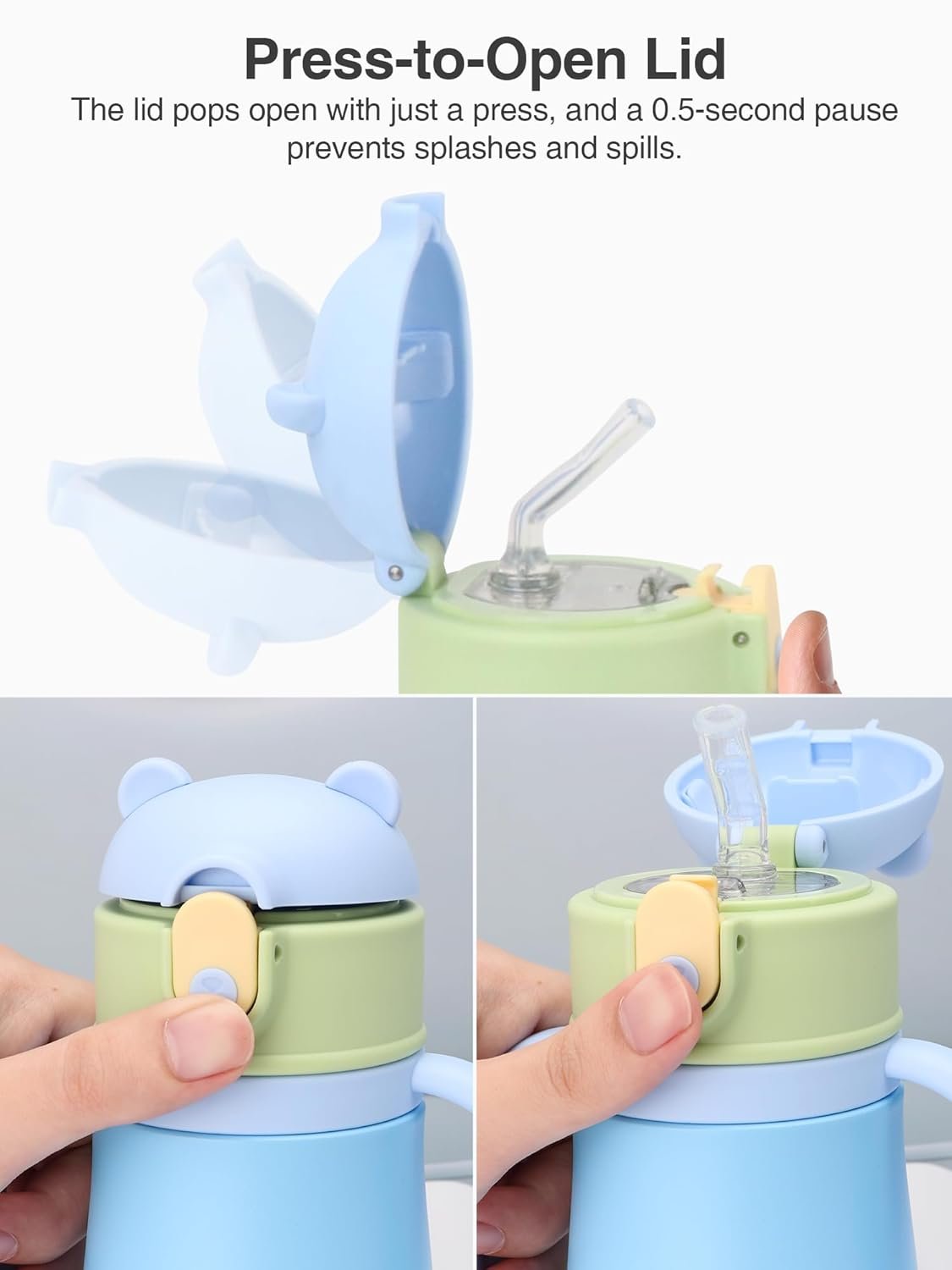 6.Anti-Splash Lid: Simply press the button to pop open the lid after a 0.5-second pause, releasing any built-up pressure to prevent hot liquid from splashing