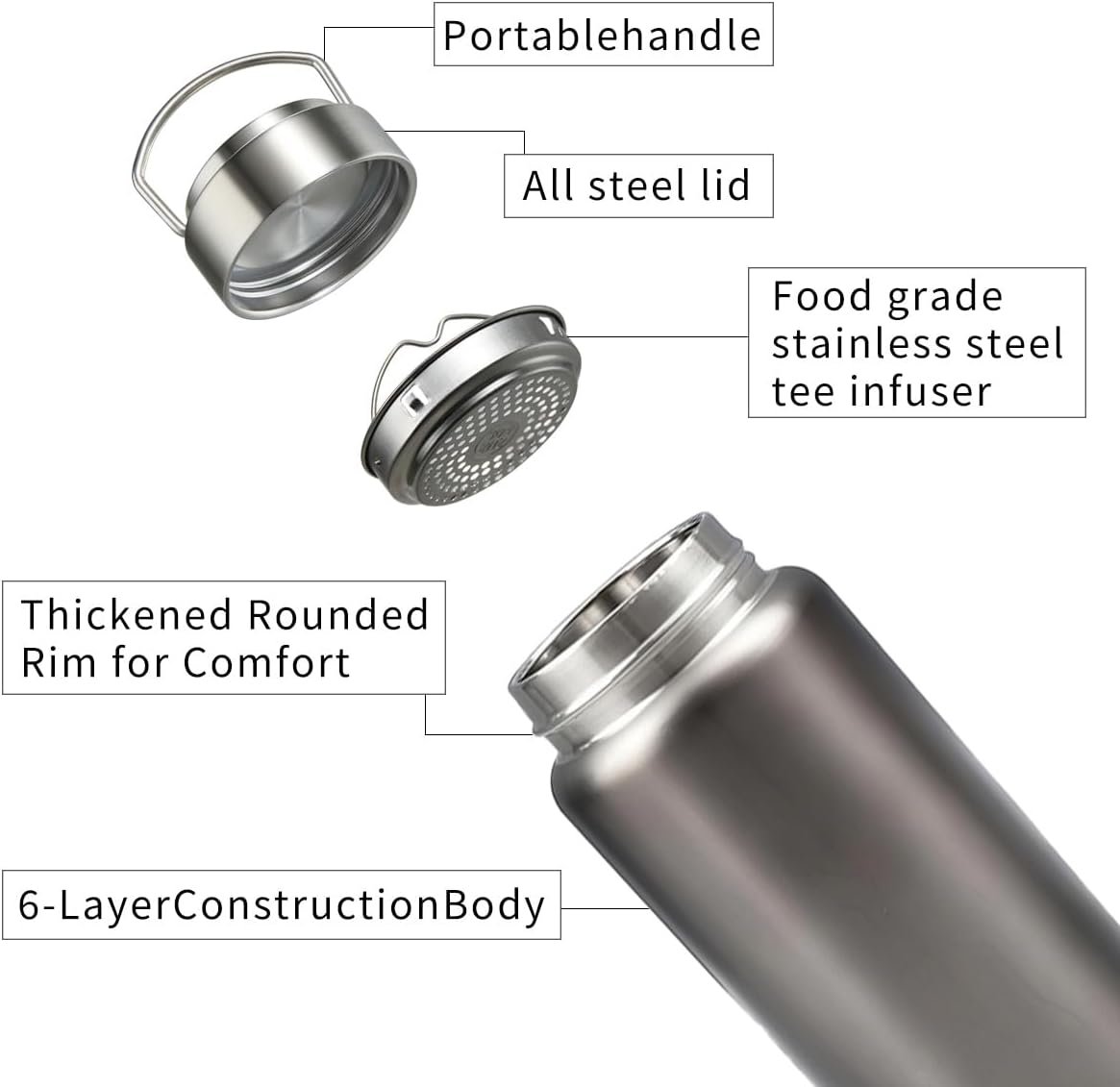 2. Double-Wall Vacuum Insulation-6-layer construction with high vacuum layer and copper plating, keeping drinks hot for up to 12 hours and cold for up to 24 hours.