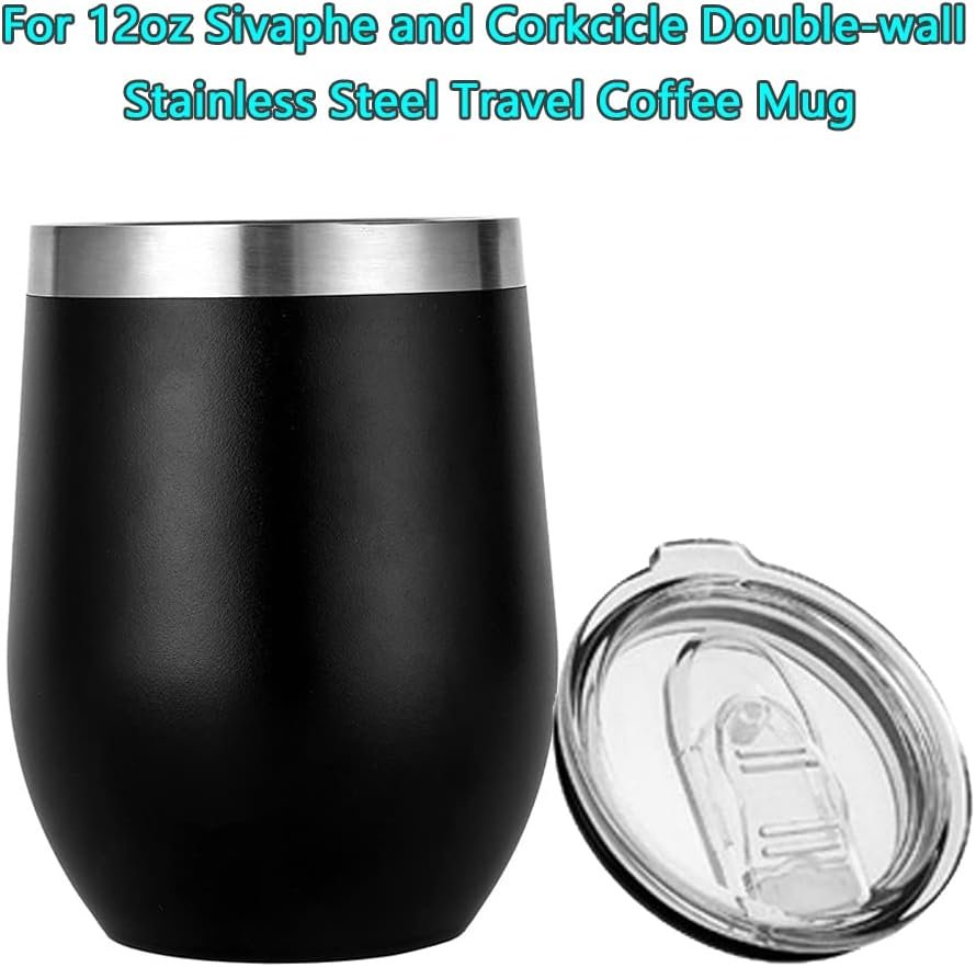 12oz stemless wine tumbler lid replacement (4 Pack),2.9 inch diameter spill proof,for Sivaphe and Corkcicle Double-wall Stainless Steel Travel Coffee Mug