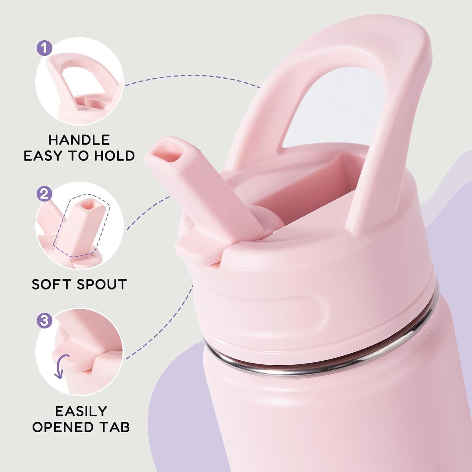 🥤Friendly Design – The bottle with straw is designed with the perfect size for little hands, making it easy for carry and use. This ensures a comfortable drinking experience while meeting their hydration needs.