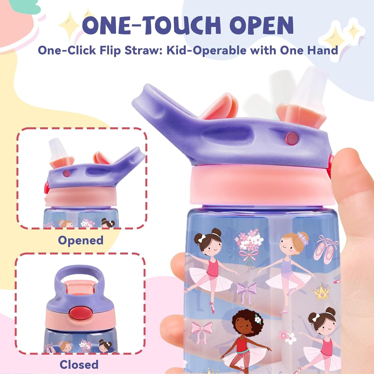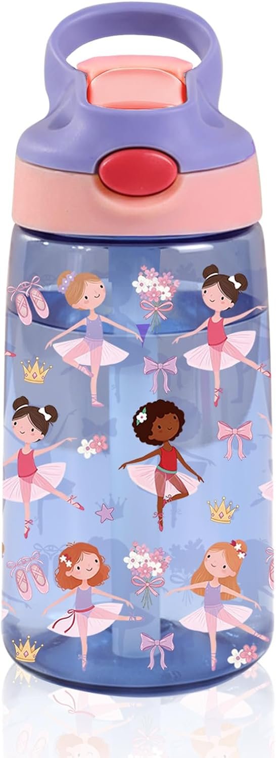 14oz Ballet Kids Water Bottle with Straw Lid – Ballerina Water Bottles for Kids, Leakproof, Lightweight, Durable Plastic Bottles for School, Pink Ballet Gift Cup for Girls Birthday Gifts