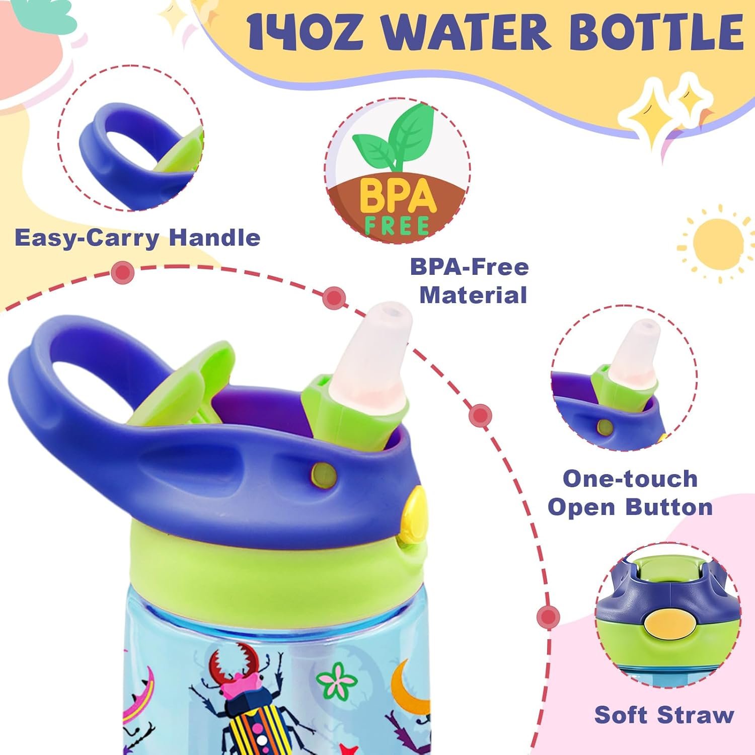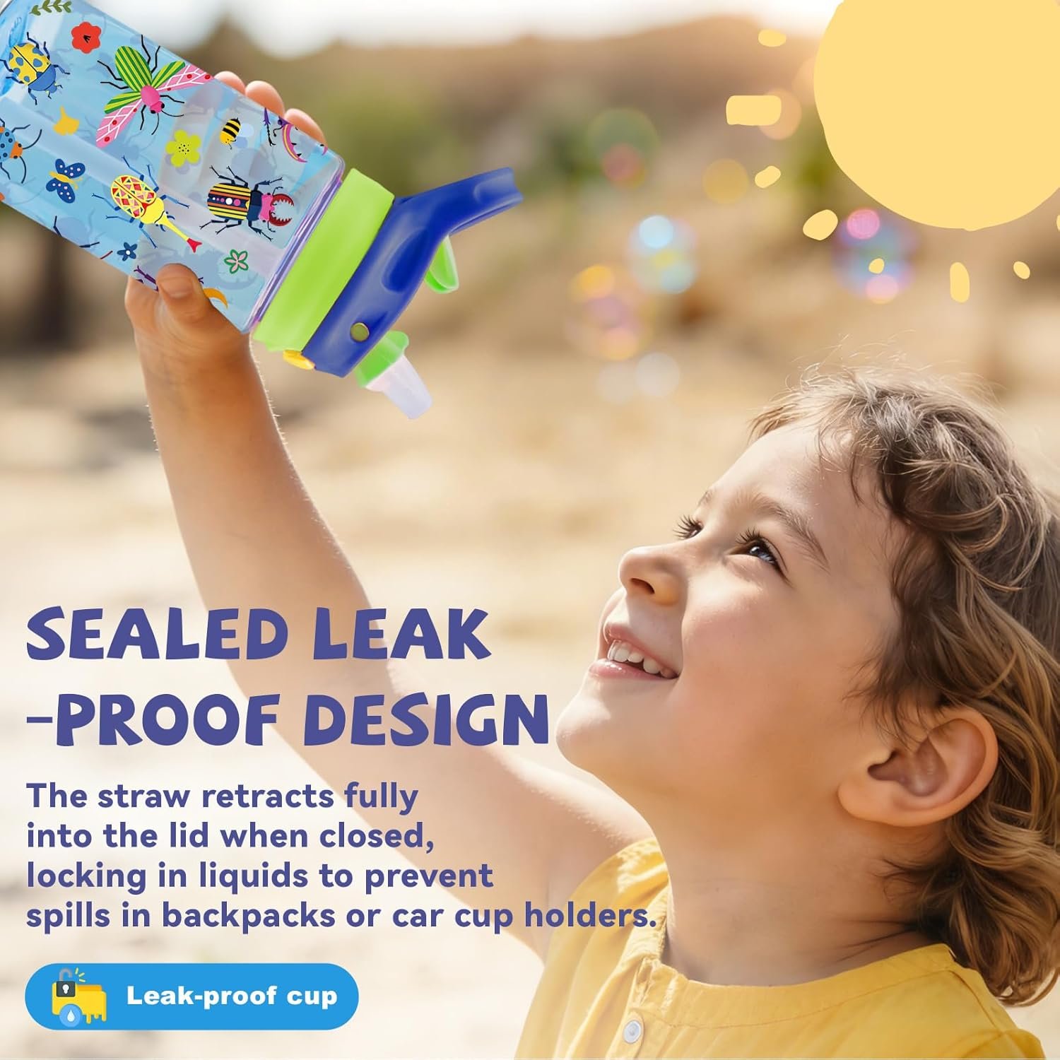 【Ideal Gift Bottle】Parents always care about their kids staying hydrated throughout the day! With its unique insect themed patterns and vibrant colors, our spill proof water bottle for kids is loved by kids. Give it as a gift to make drinking water fun for them!