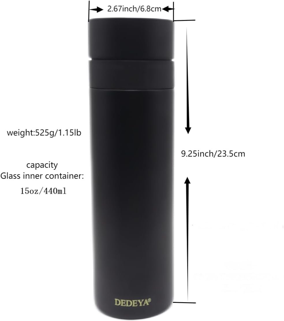 2.The glass liner avoids food or drinks suffering from rust or odor. Great for Water Tea Juice Coffee,Light Weight and Portable for Women Teens and Kids.The removable glass inner Prefects for all kind of beverages.Easy to clean.