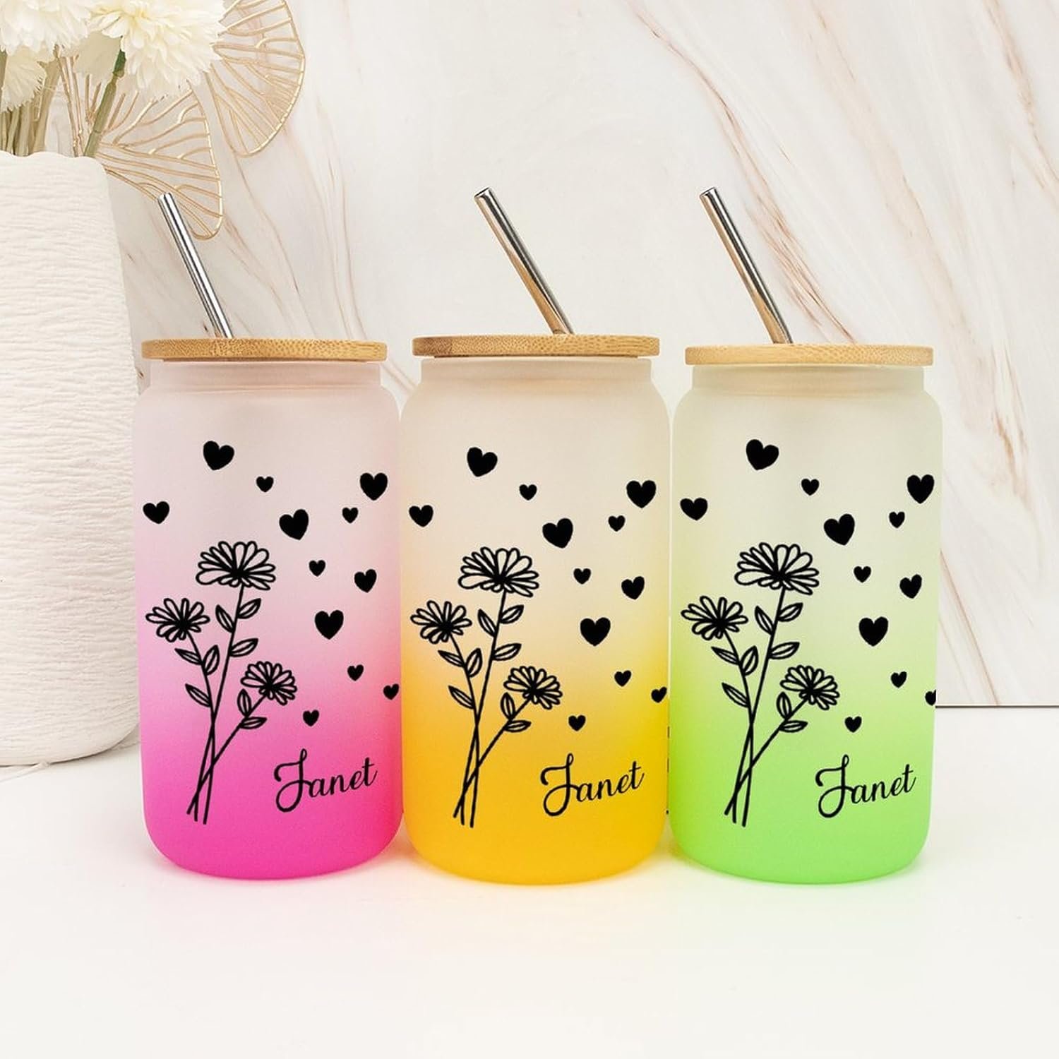 A great gift for many occasions; friendship gift for your good friends, wedding, bridal shower, Christmas gift, or just because Glass tumblers for a variety of beverages; DIY your own drinks with our iced coffee cups;