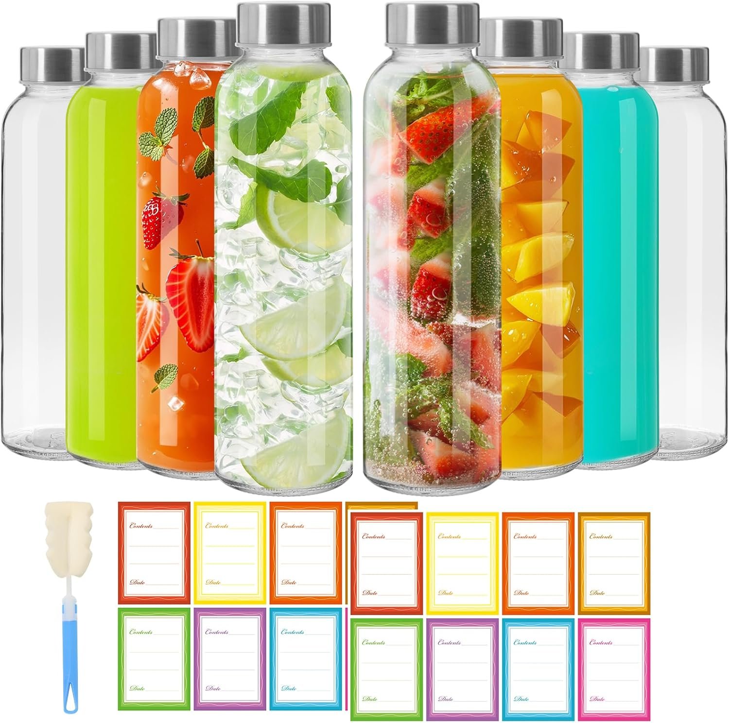Premium Glass Bottles: Crafted from robust, high-quality glass, these bottles are both lead-free and BPA-free; They are reusable, eco-friendly, and incredibly easy to clean