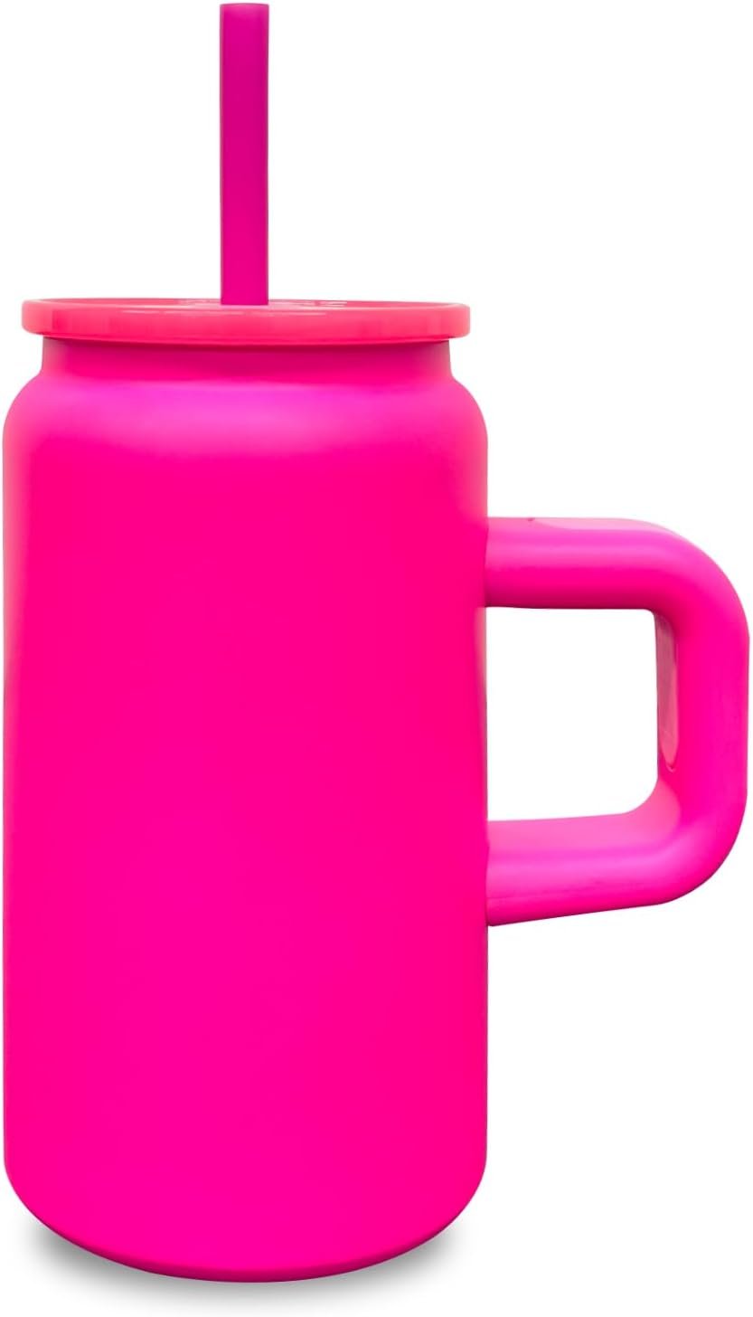 16 oz Sublimation Tumbler with Handle and Straw for Kids, Stainless Steel Sublimation Tumblers Bulk with Lids, Vacuum Insulated Iced Coffee Cups for Smoothie Water Soda DIY Gift (Rosy,1 pack)