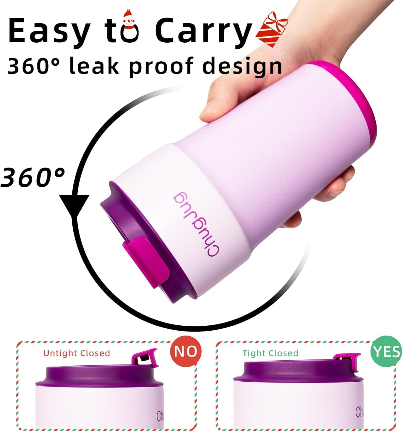 CUPHOLDER-FRIENDLY AND EASY TO CLEAN: Made from BPA-free stainless steel with a ceramic coating, this coffee mugs for women ensure your drinks are safe and free from harmful substances. The wide mouth design allows for easy cleaning, and our coffee mugs to go fit in most car cup holders, making them the perfect choice for traveling or commuting