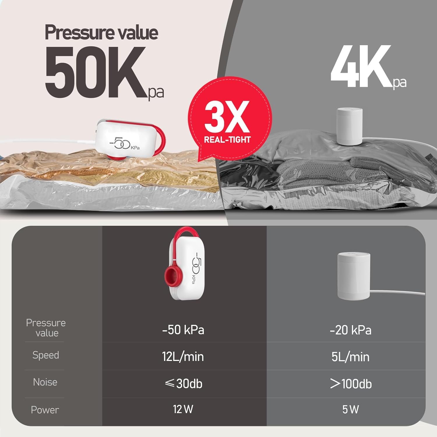 -50 kPa High-Pressure Electric Pump – Full air extraction, ultra-tight compression, maximizes storage