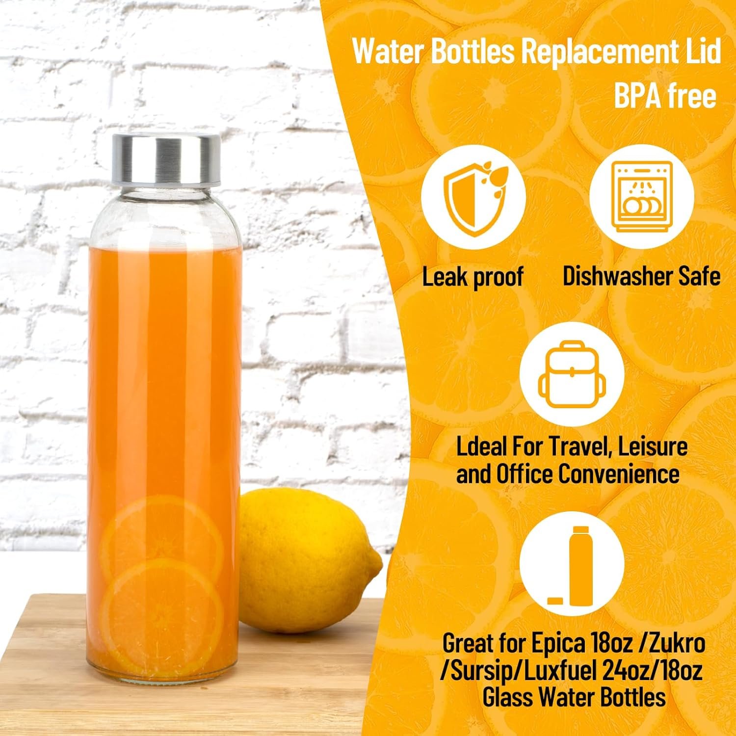 Luxfuel Stainless Steel Cap for durability – this premium lid ensures long-lasting use and protects your beverages from spills and leaks. Designed specifically to fit 18oz /24oz glass water bottles for Epica, zukro, Brieftons and Sursip . Enjoy a worry-free drinking experience at home, in the office, or on the go
