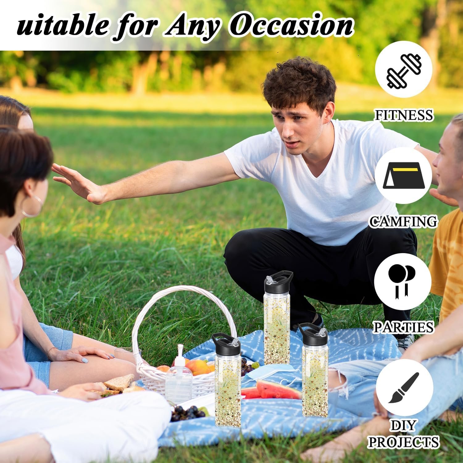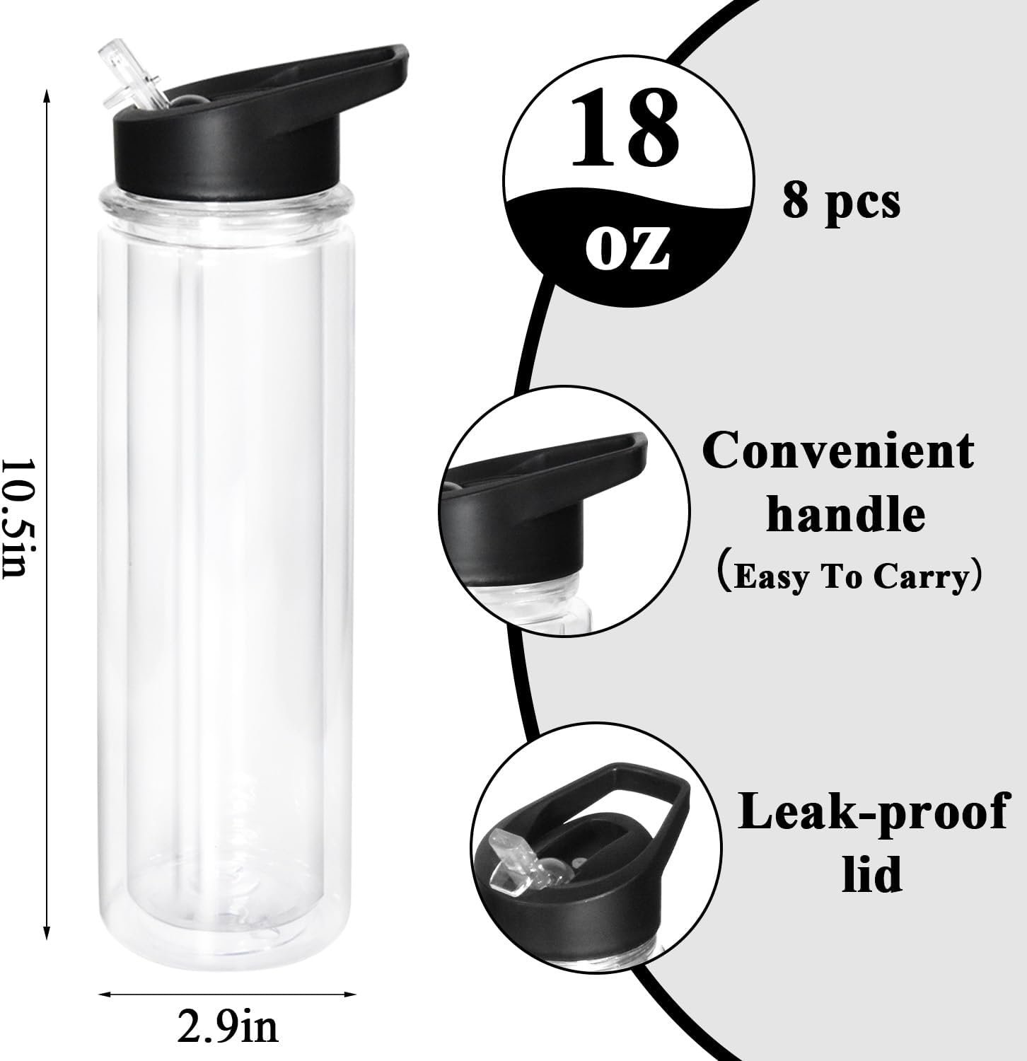 Clear Double Wall Design & Durable Build: The transparent double wall of these Double Wall Clear Water Bottle Bulk tumblers lets show off their DIY creations (sparkles look amazing inside!). They’re also drop-resistant—perfect for busy running around the house, playground, without worrying about cracks or breaks.