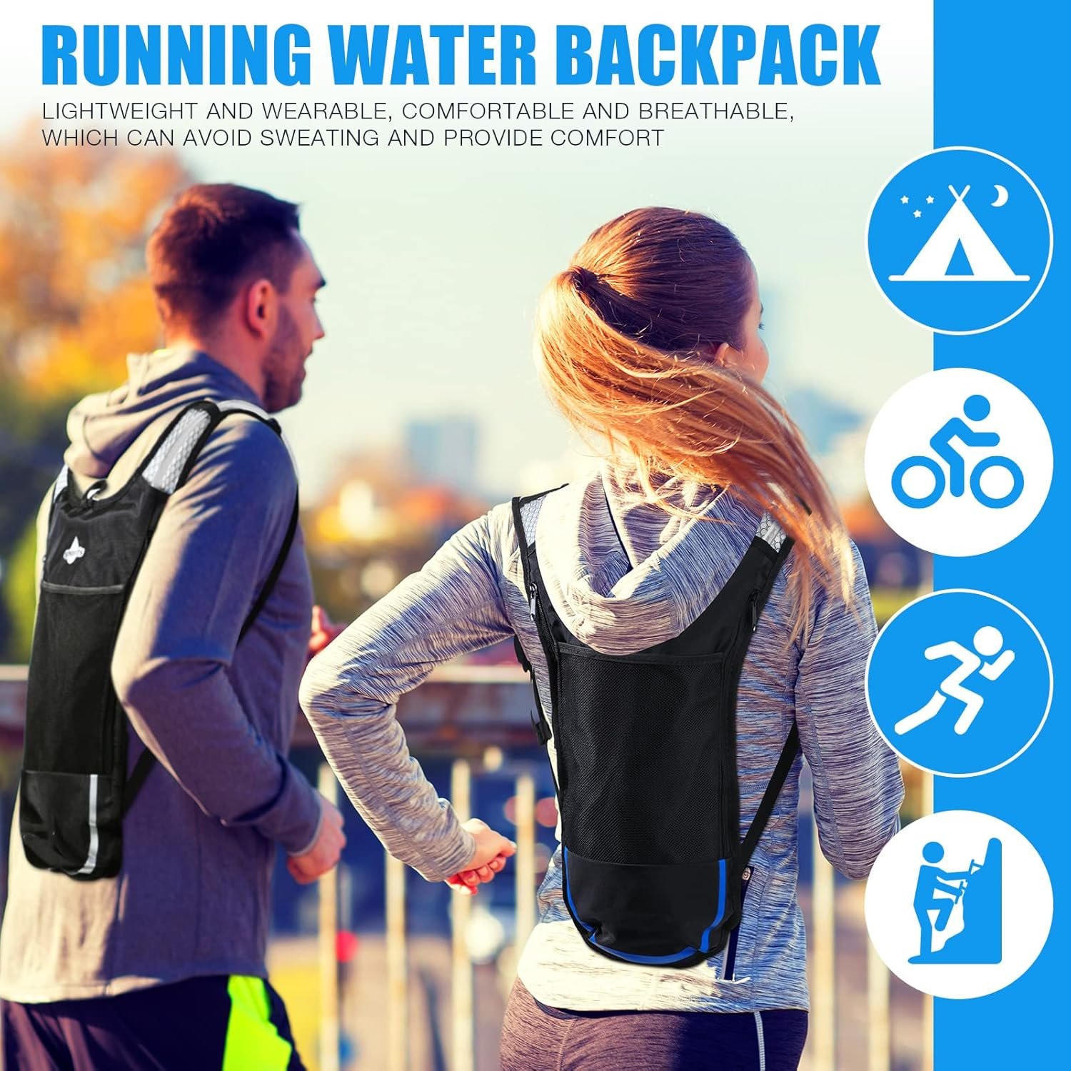 What You Will Get: you will receive 2 pieces of hydration backpacks, each one comes with 1 piece of 2L water bladder, a complete set to make you stay hydrated during outdoor activities, and will not add extra burden on your back, ideal for both men and women