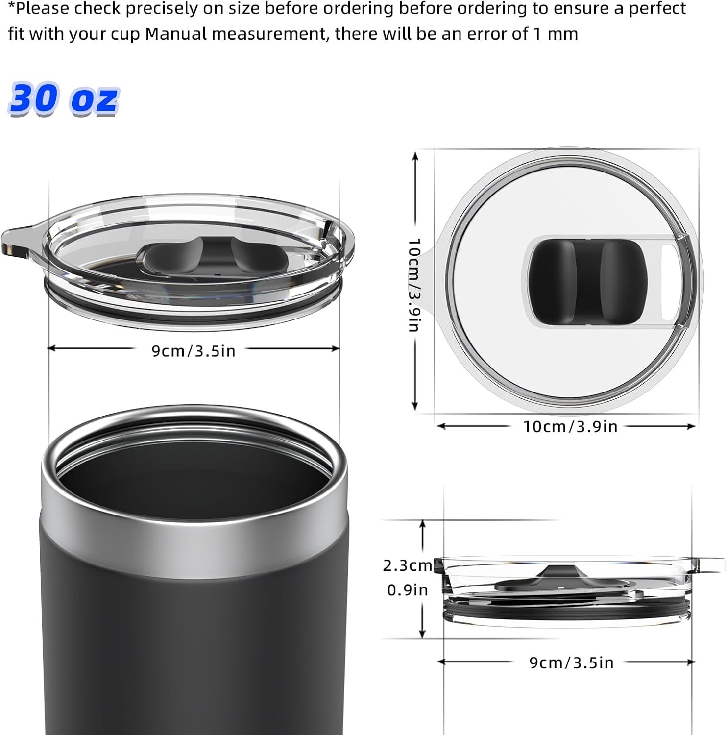 Perfect Replacement Cover:Our replacement glass lids are compatible with 30 oz tumblers, to avoid purchasing the wrong size lid, please measure the inner and outer diameter of your cup before purchasing