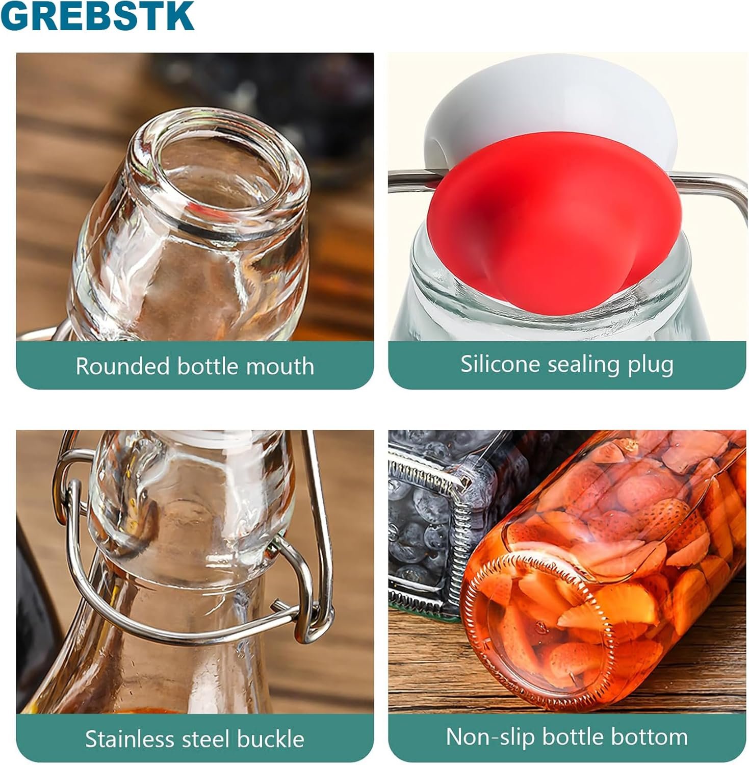 Airtight Seal for Maximum Freshness & Carbonation: Equipped with a strong stainless steel clasp and a high-quality silicone gasket, these flip top bottles provide an absolutely leakproof and airtight closure. This design ensures your beverages stay perfectly carbonated during secondary fermentation and remain fresh longer. Ideal for kombucha, beer, kefir, or homemade syrups, these bottles deliver professional-level performance without the worry of leakage.