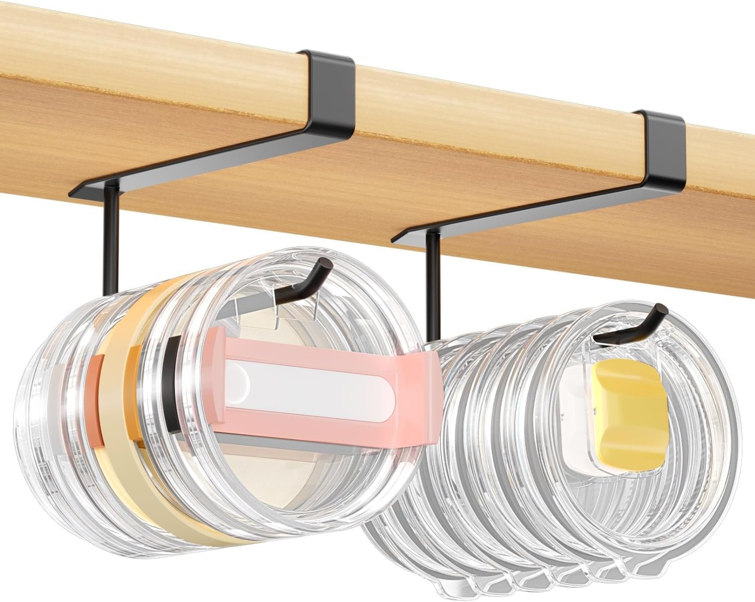 2 Pack Tumbler Lid Organizer, Under Cabinet Cup Lid Holder for Yeti Insulated Mug/Stanley Insulated Mug/Simple Modern Insulated Mug Lid, No Gluing, No Drilling, Up to 10 Lids (Black)