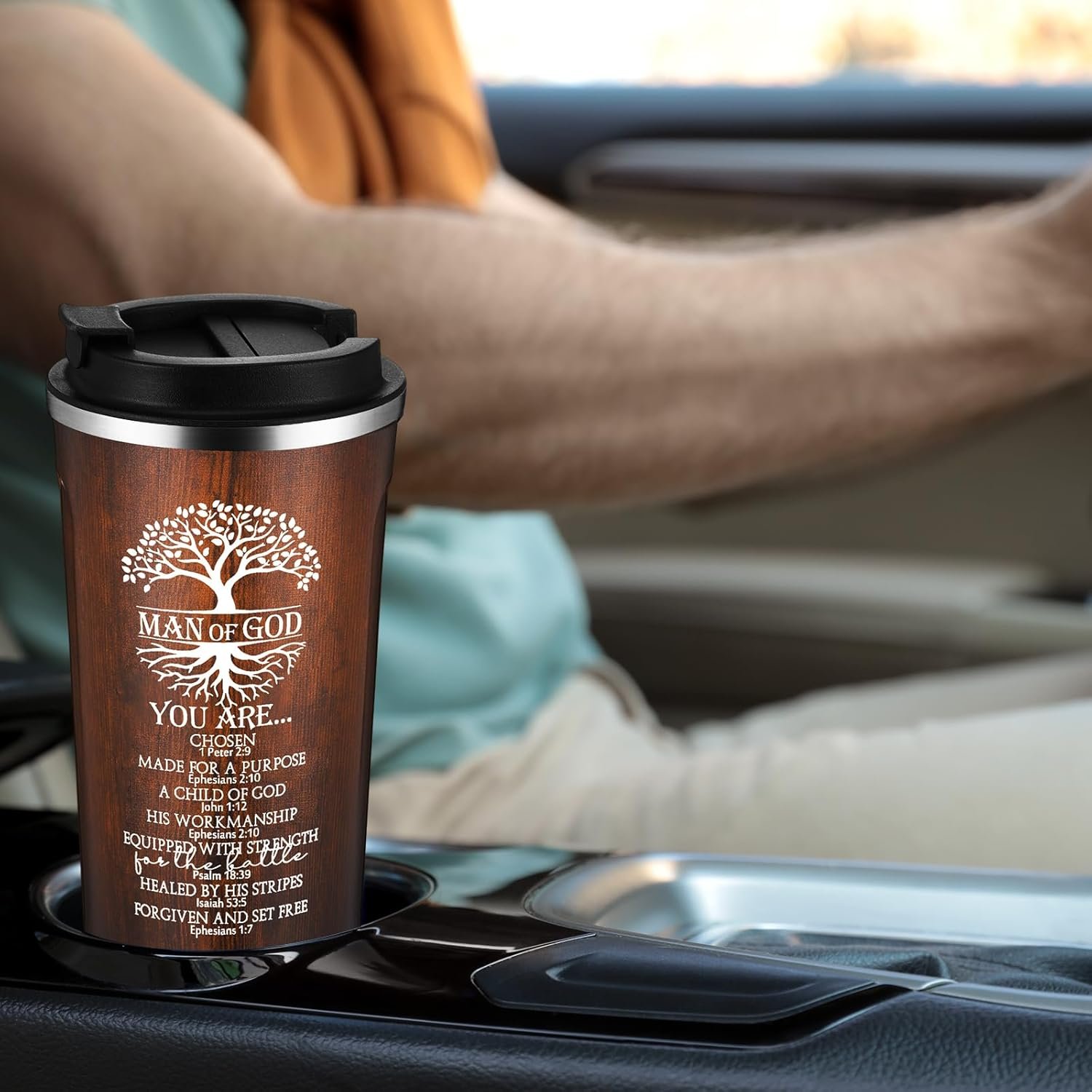 2 Pcs Christian Gifts for Men 17 oz Coffee Tumbler Inspirational Man of God Mugs Stainless Steel Tumbler with Lid Father’s Day Religious Spiritual Gift Set