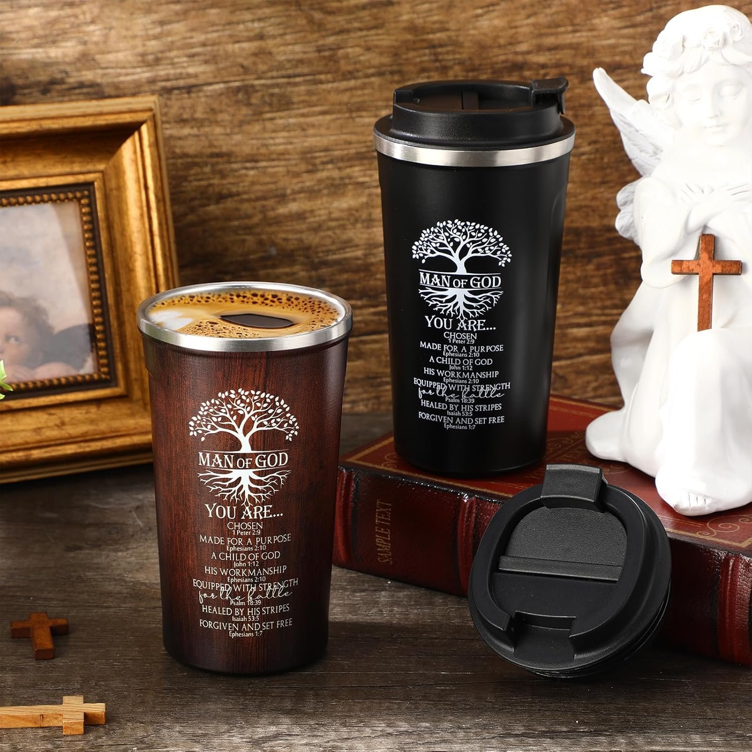 The package contains 2 pcs Christian Coffee Tumblers in 2 distinct styles; These tumblers are ideal companions for everyday use, whether at home, work, or travel