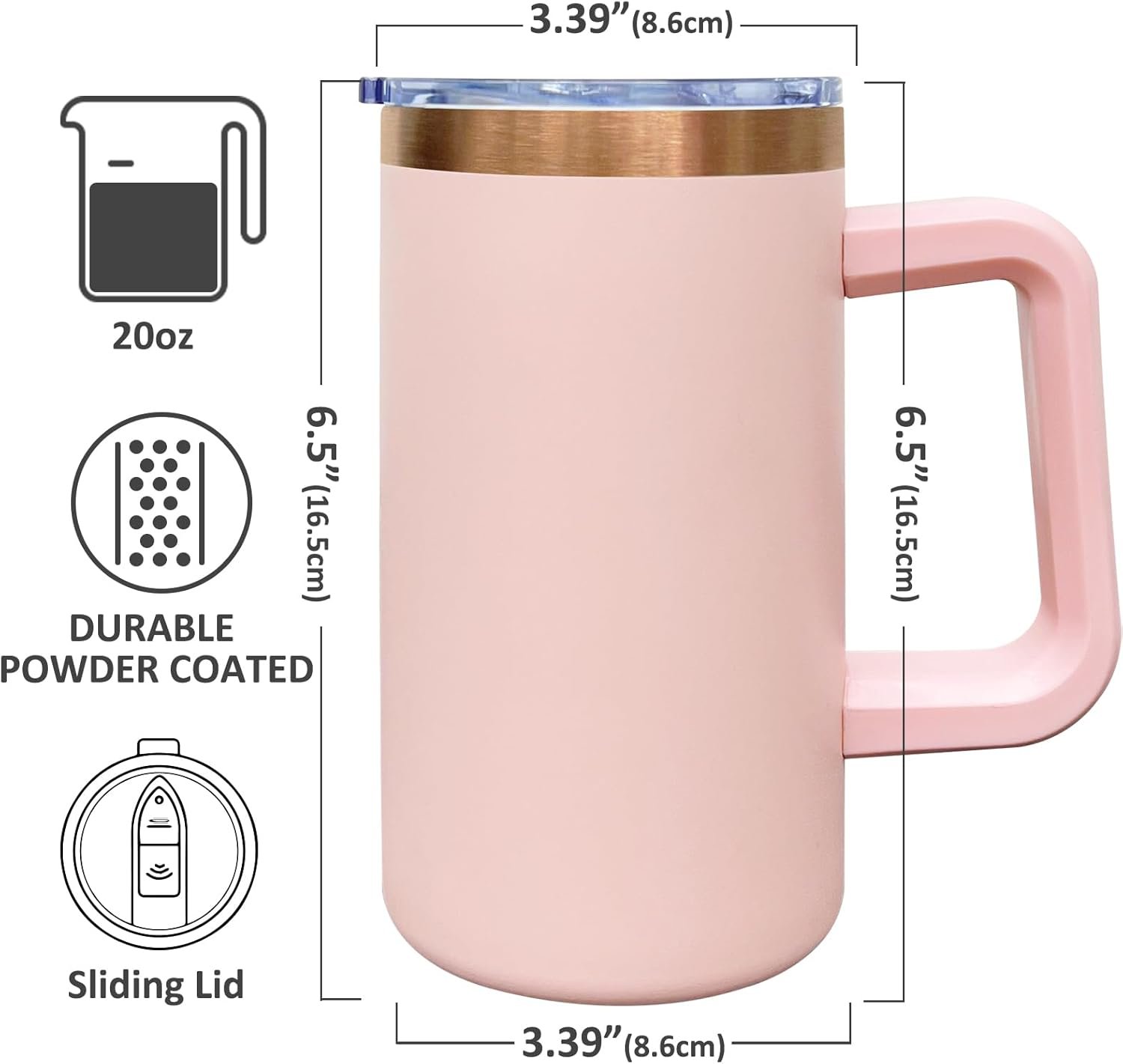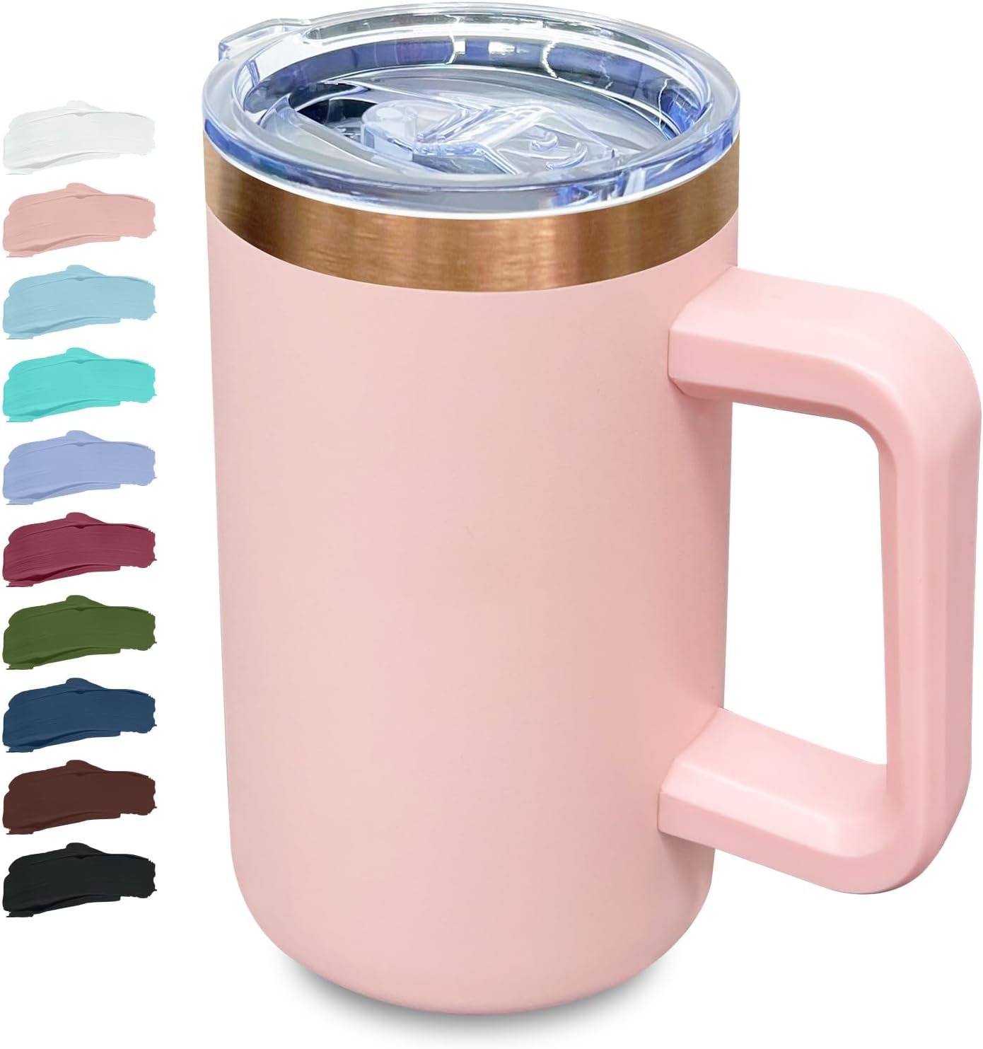 20 oz Insulated Coffee Mug with Lid, Stainless Steel Coffee Tumbler Bulk, Double Wall Vacuum Travel Mug with Handle, Leakproof Powder Coated Coffee Cups for Hot and Cold Drinks (Pink,1 pack)