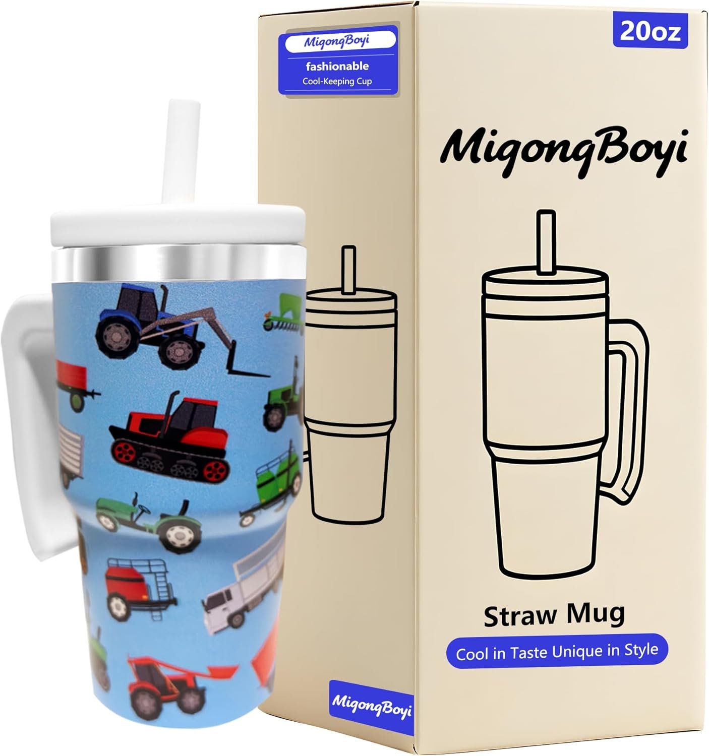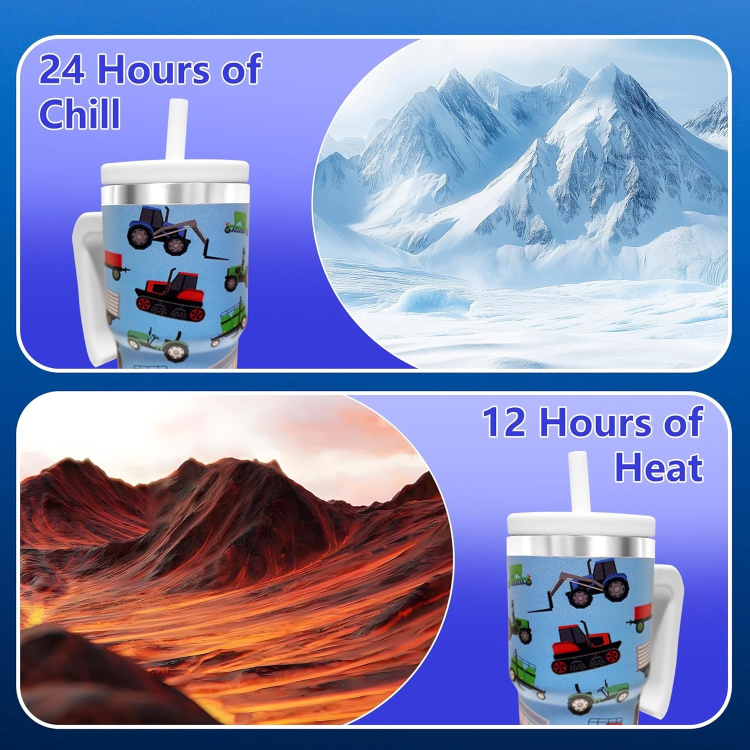 20-OZ Insulated Water Bottle,Insulated Stainless Steel Tumbler,Reusable Cold Drink Thermos,BPA-Free, Double-Wall Stainless Steel Water Bottle (Blue-Farm Vehicle, 20, Fluid Ounces)