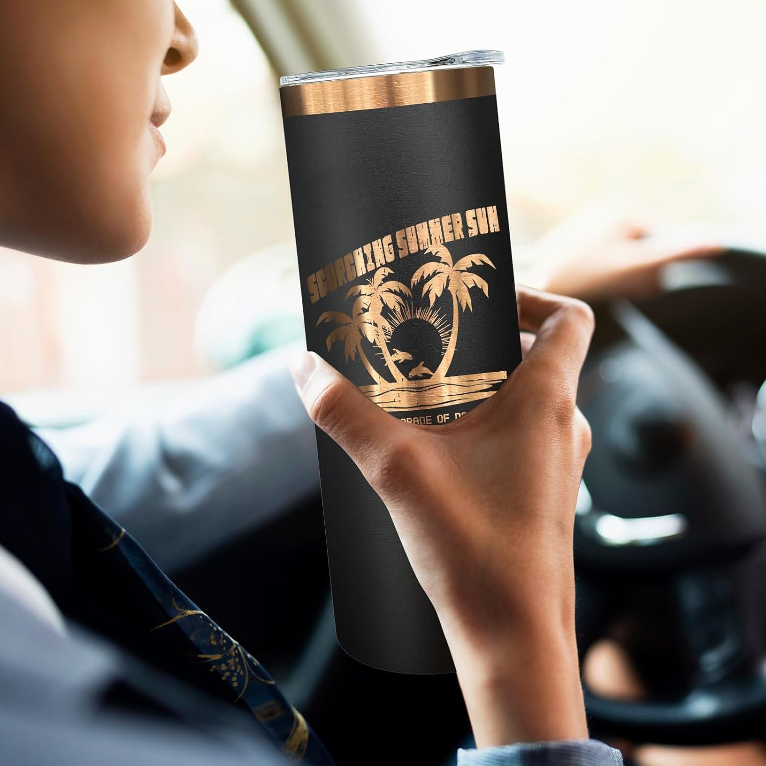 Colored Powder Coated Tumbler: Different from other stainless steel tumblers, our tumblers are copper-plated, they are perfect for laser engraving, vinyl decals or color painting; the copper underneath will be revealed after laser engraving. You can create your own personalized tumbler with your own art form