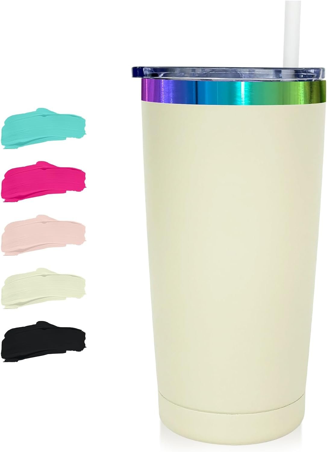 20 oz Stainless Steel Tumbler with Lid and Straw Double Wall Vacuum Insulated Coffee Mug Powder Coated Cup for Hot and Cold Drinks (White,1 pack)