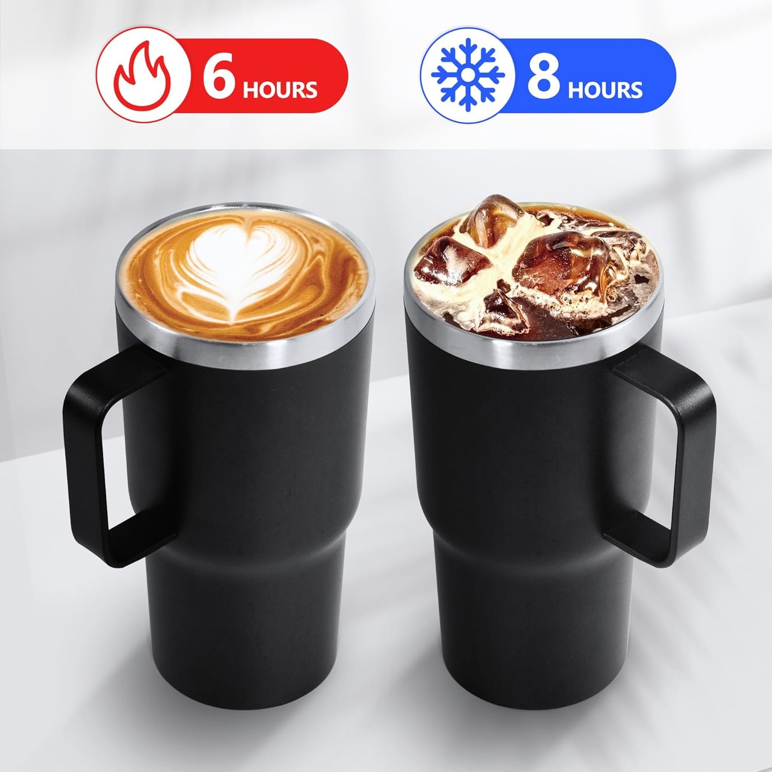 【Insulated tumbler】: Double-wall vacuum-insulated tumbler keeps drinks piping hot or icy cold for hours. The powder coating on the outside of the coffee cup keeps it dry and non-condensing while drinking.
