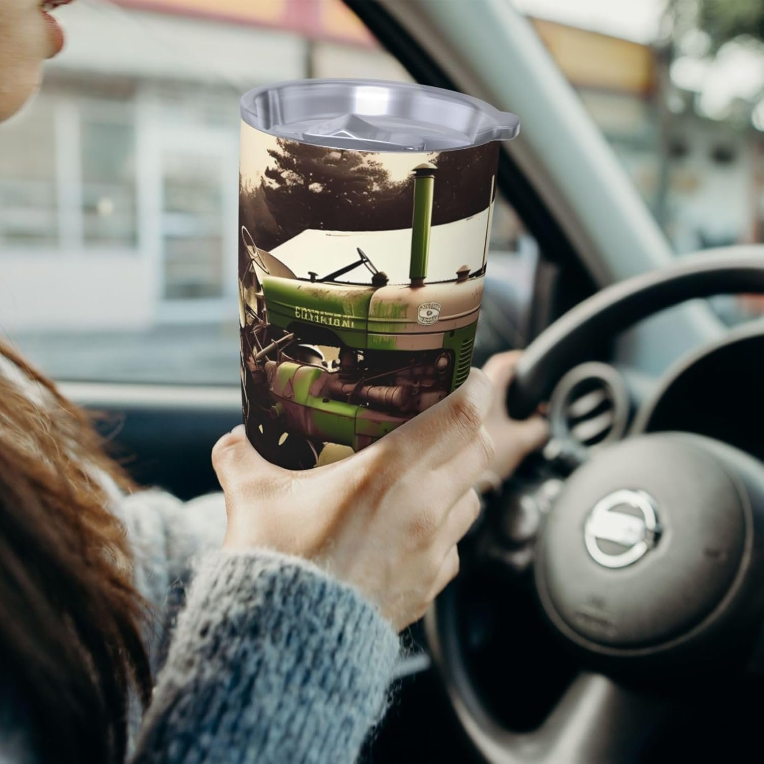 20 Oz Tumbler With Lid And Straw, Stainless Steel Travel Coffee Mug Double Wall Insulated Tea Cup Old Tractor Photo Farm Water Bottle Gifts For Women Men