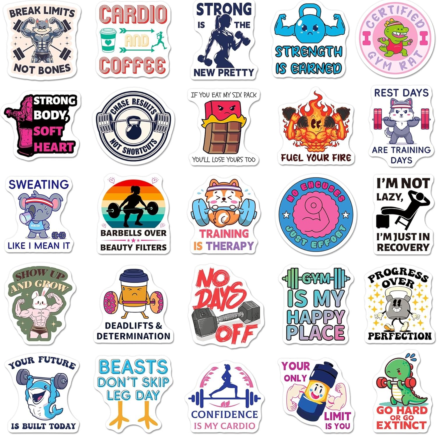 Quality Vinyl: Made from premium, waterproof vinyl, these cartoon workout stickers resist fading and peeling, keeping their vibrant designs bright and intact for a long time.