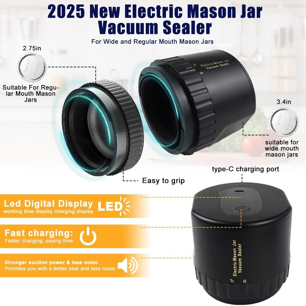 2026 New Electric Mason Jar Vacuum Sealer for Wide and Regular Mouth Mason Jars,Abnaok Automatic Vacuum Sealer for Jars with Bonus Lips & Labels & Bottle Opener,Jar Vaccum Sealer